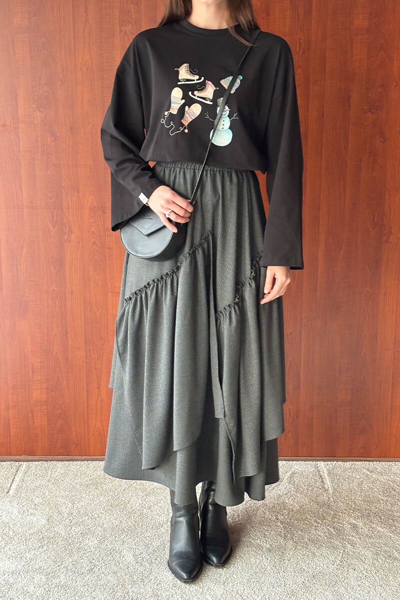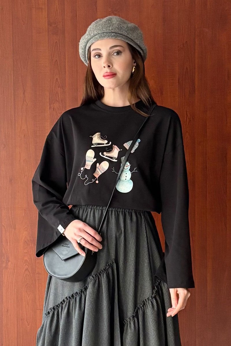 Siyah Winter Baskılı Basic Body