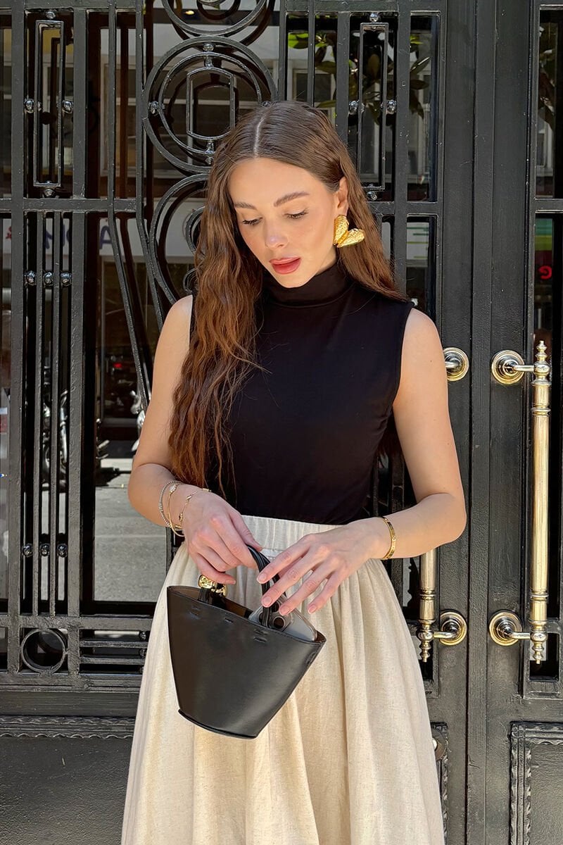 Bu kışın favori parçası olan krem yarım boğazlı body, sıcak tutarken şıklığı da bir arada sunuyor.