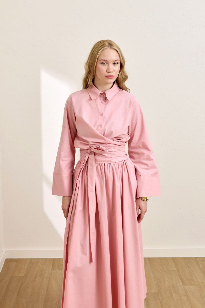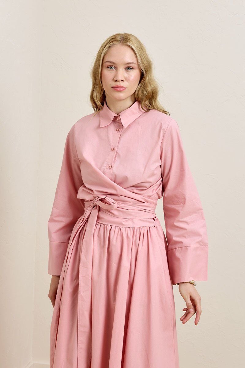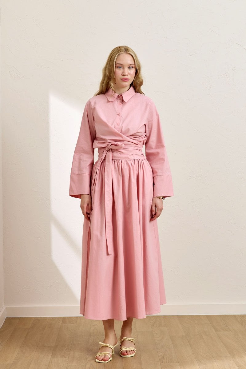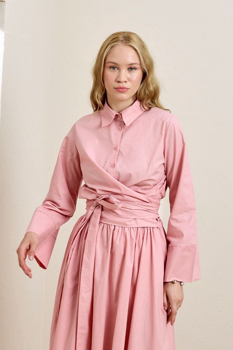 Fiyonk detaylı crop gömlek ve balon etek kombinasyonuyla dikkat çekici bir görünüm elde edebilirsin.