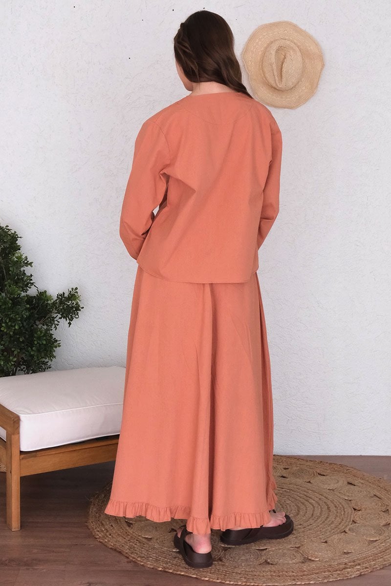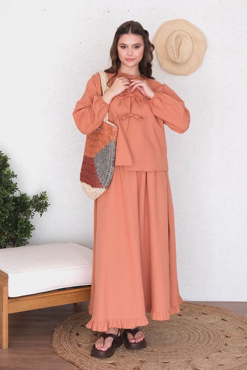 Soft Turuncu Organik Keten Eteği Fırfırlı Etek
