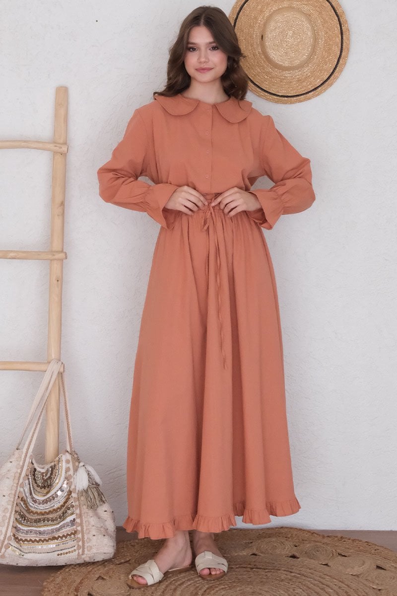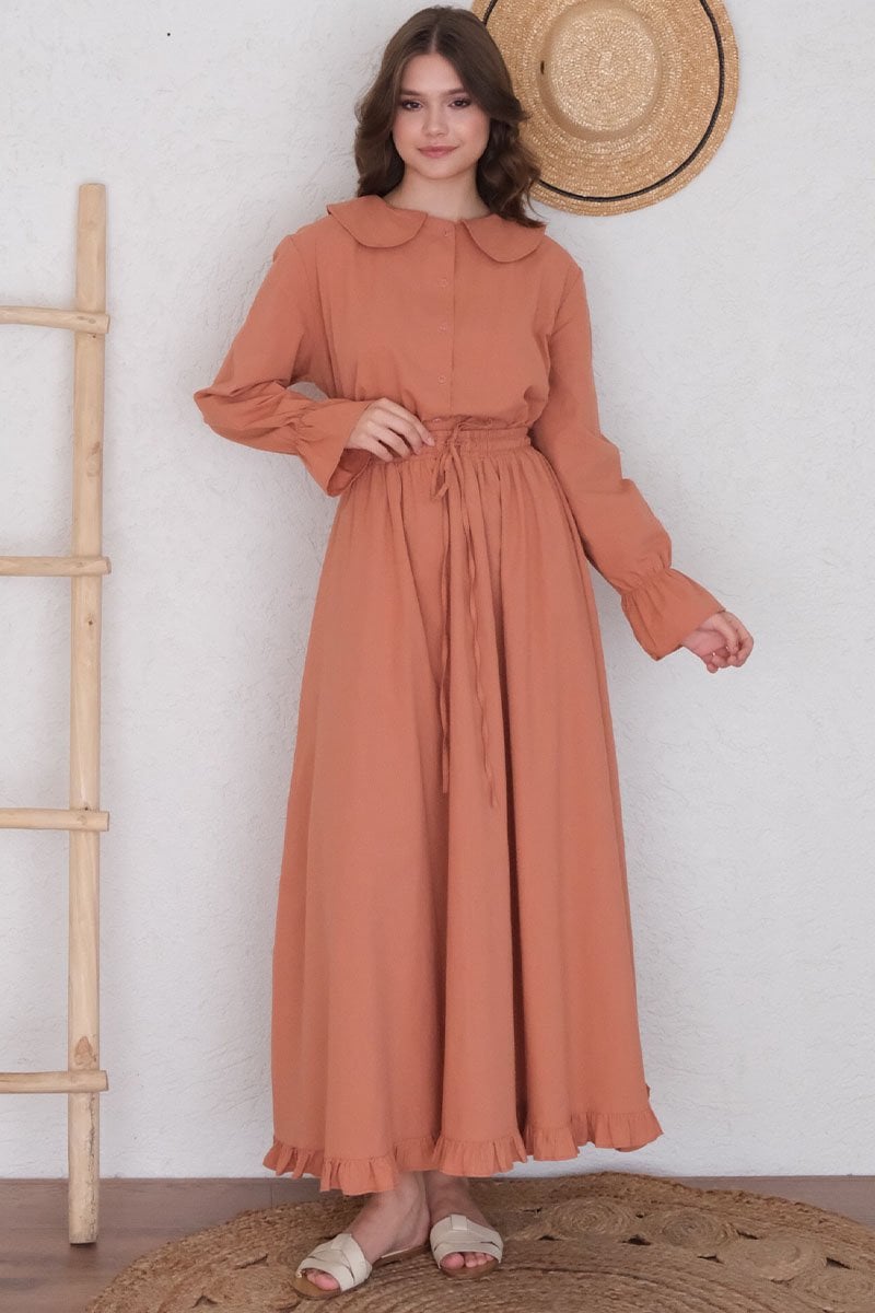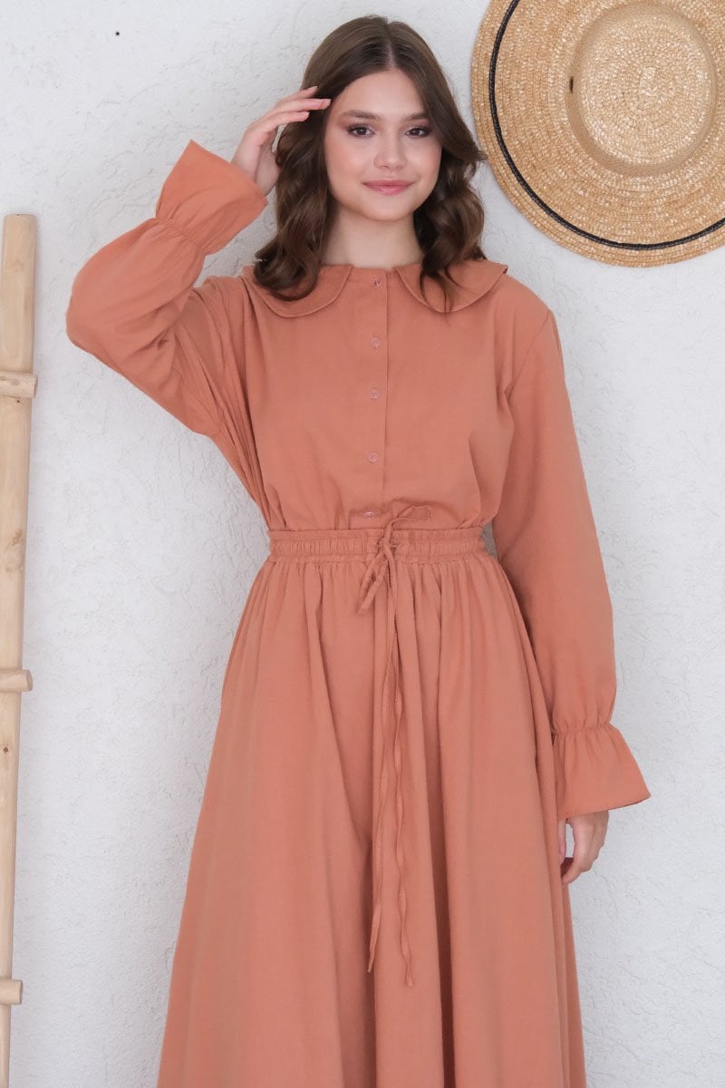 Soft Turuncu Organik Keten Marul Kol Gömlek