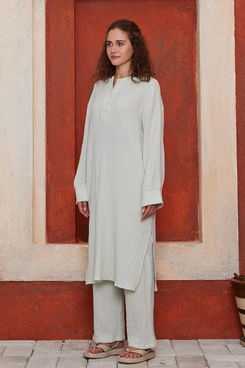 Su Yeşili Müslin Uzun Patlı Takım