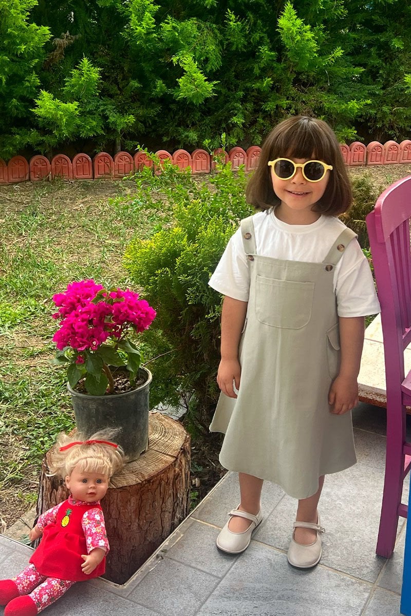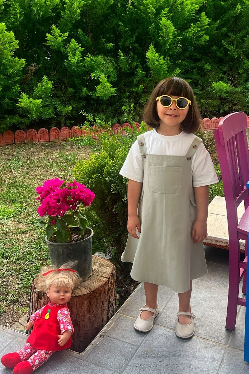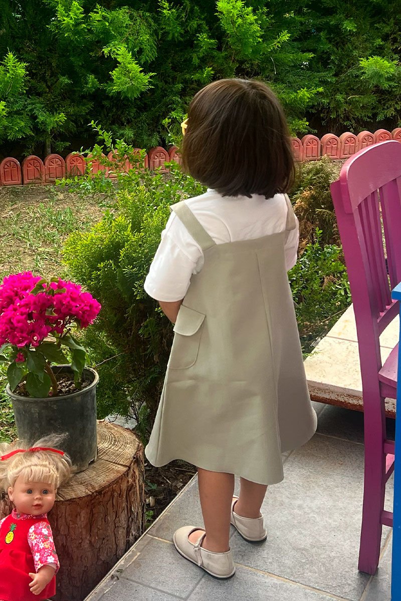 Küf Yeşili Duck Keten Çocuk Etekli Salopet