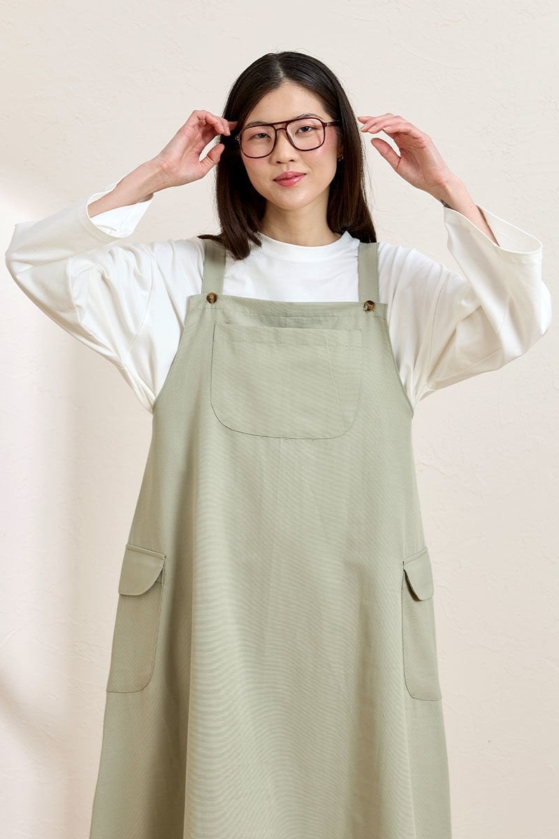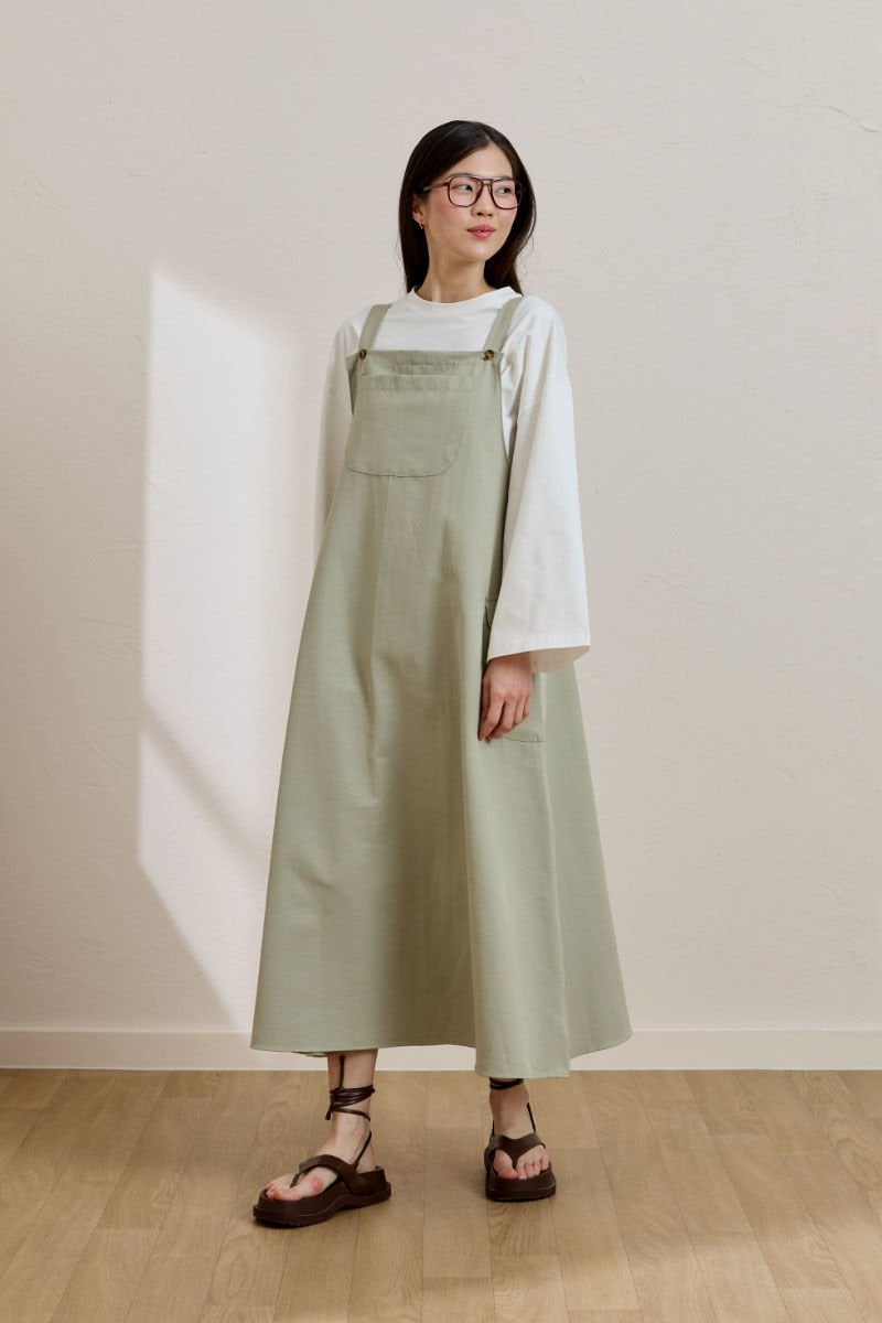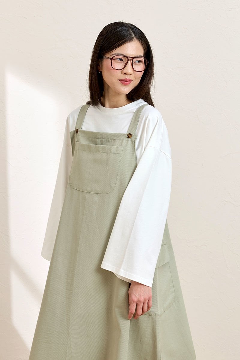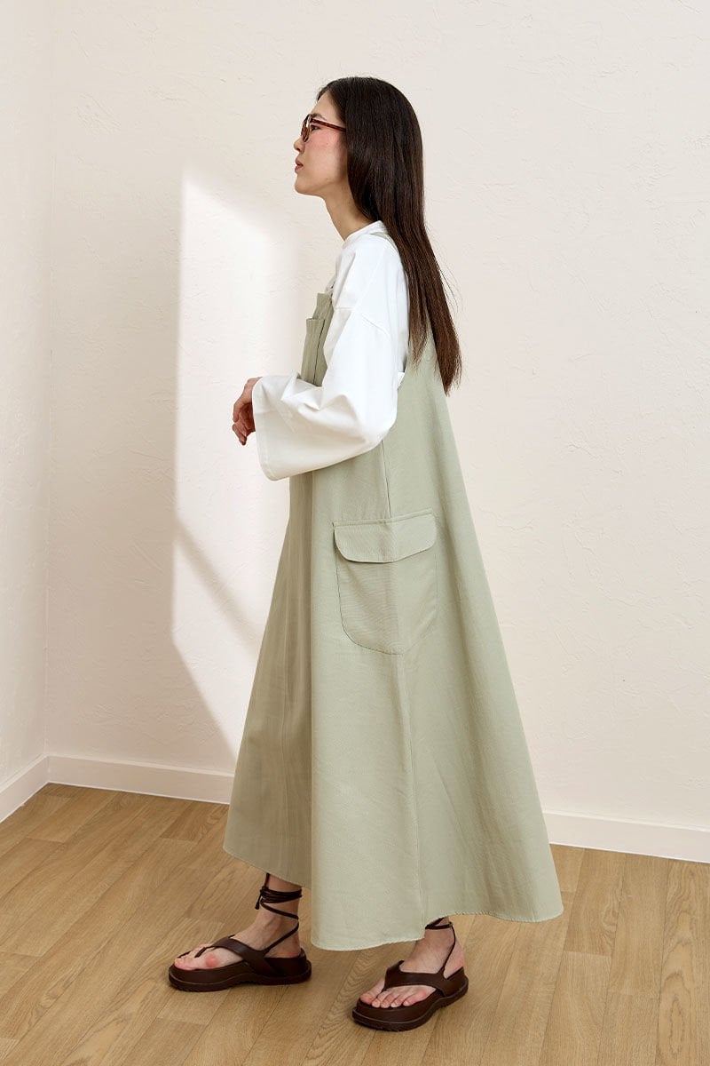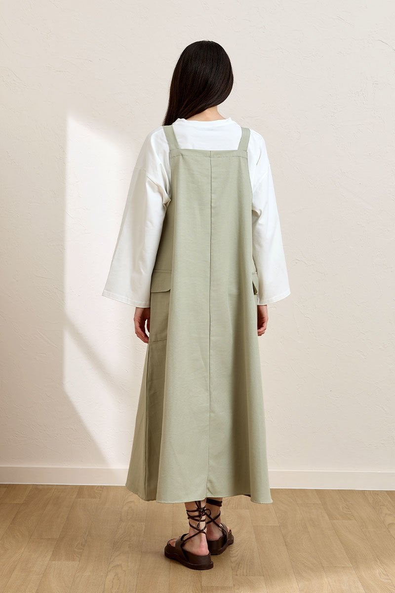 Küf Yeşili Keten Etekli Salopet