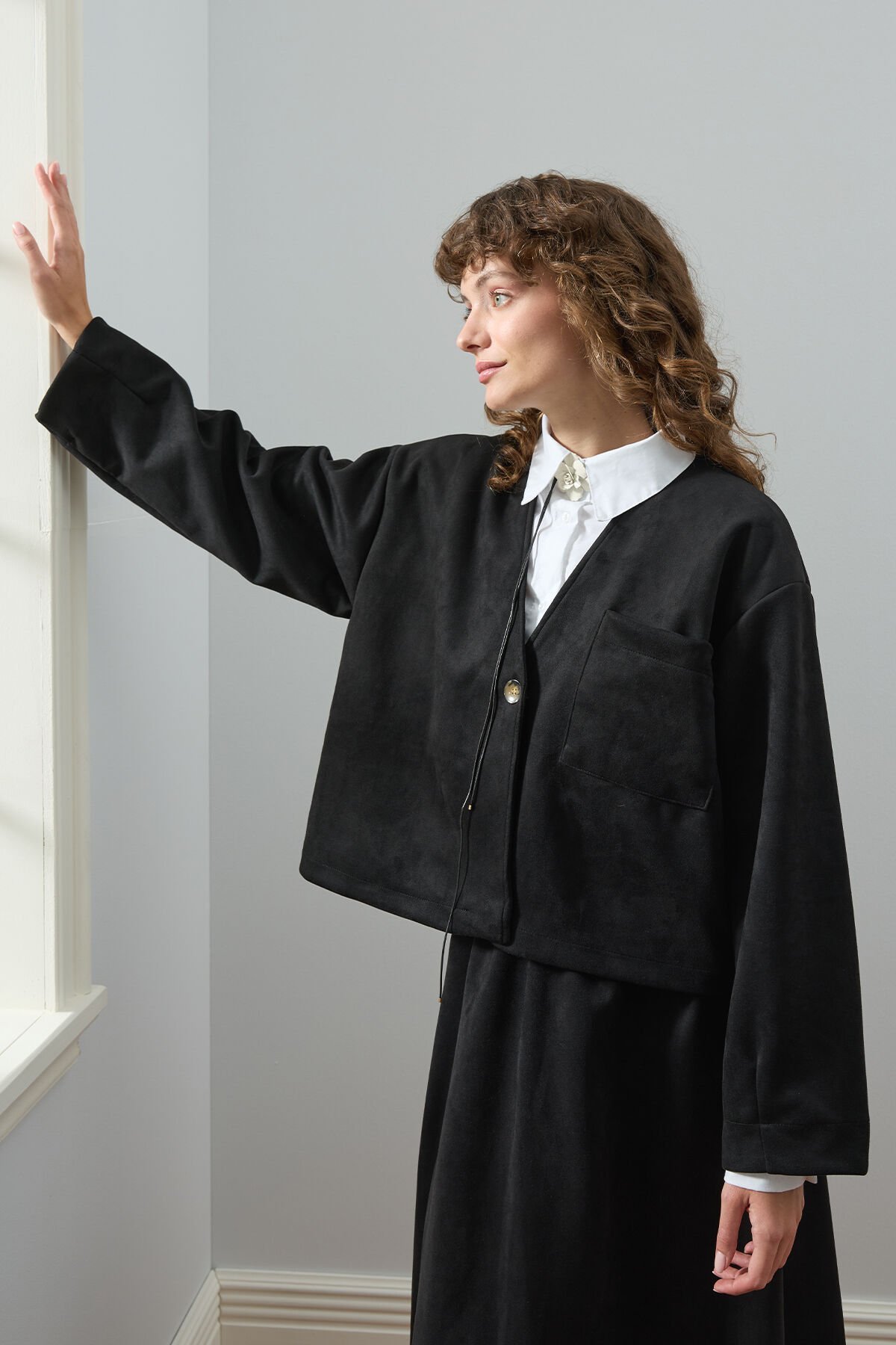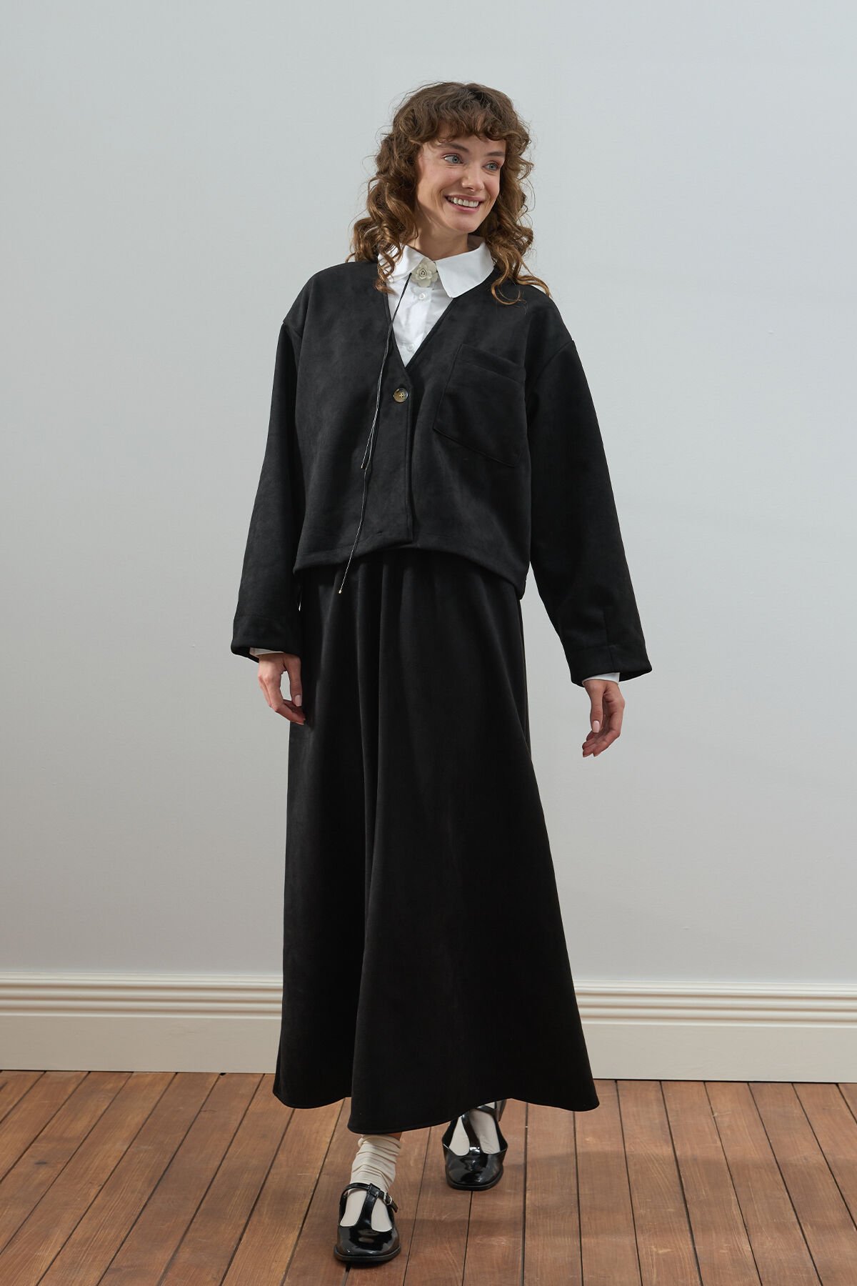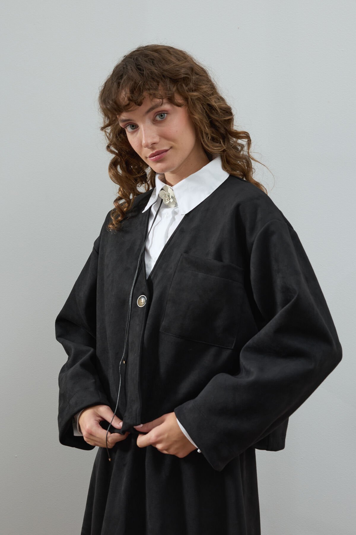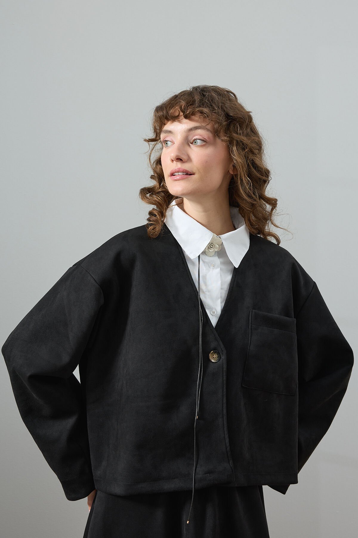 Siyah Süet Tek Cepli Ceket