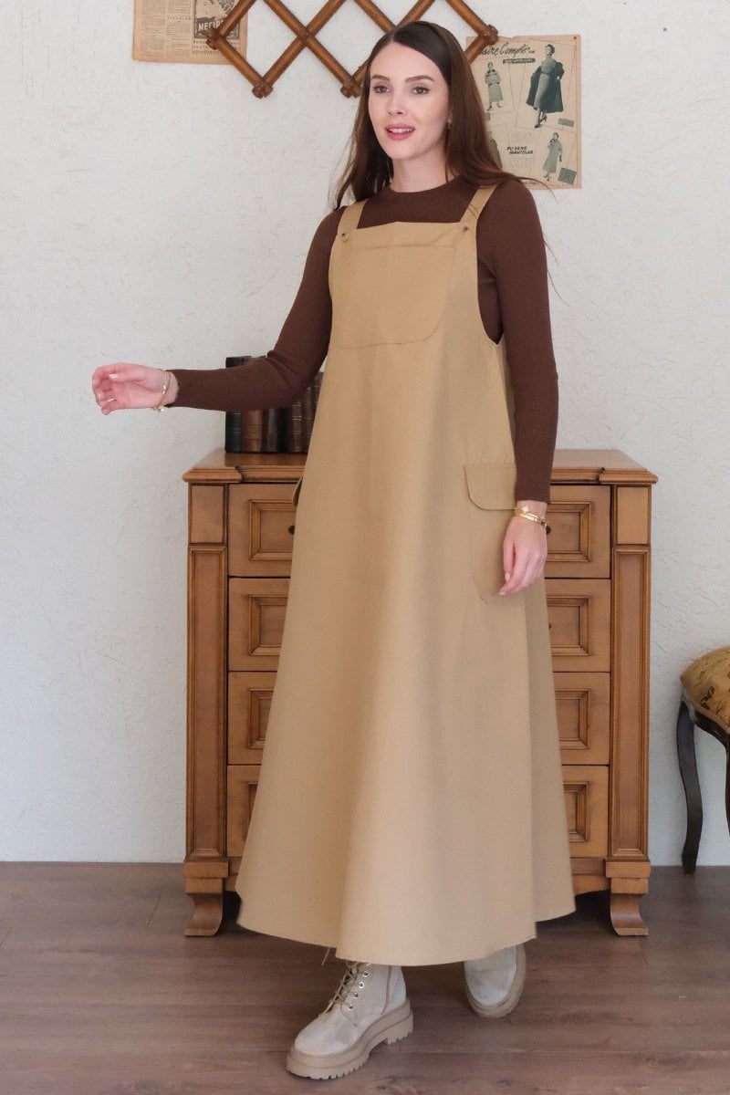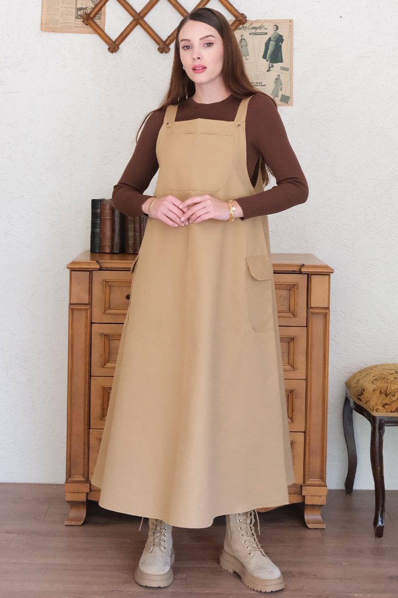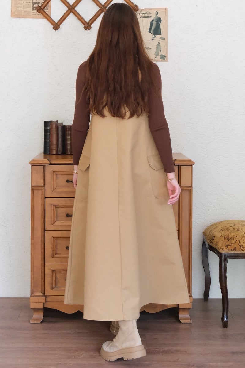 Sütlü Kahve Keten Etekli Salopet