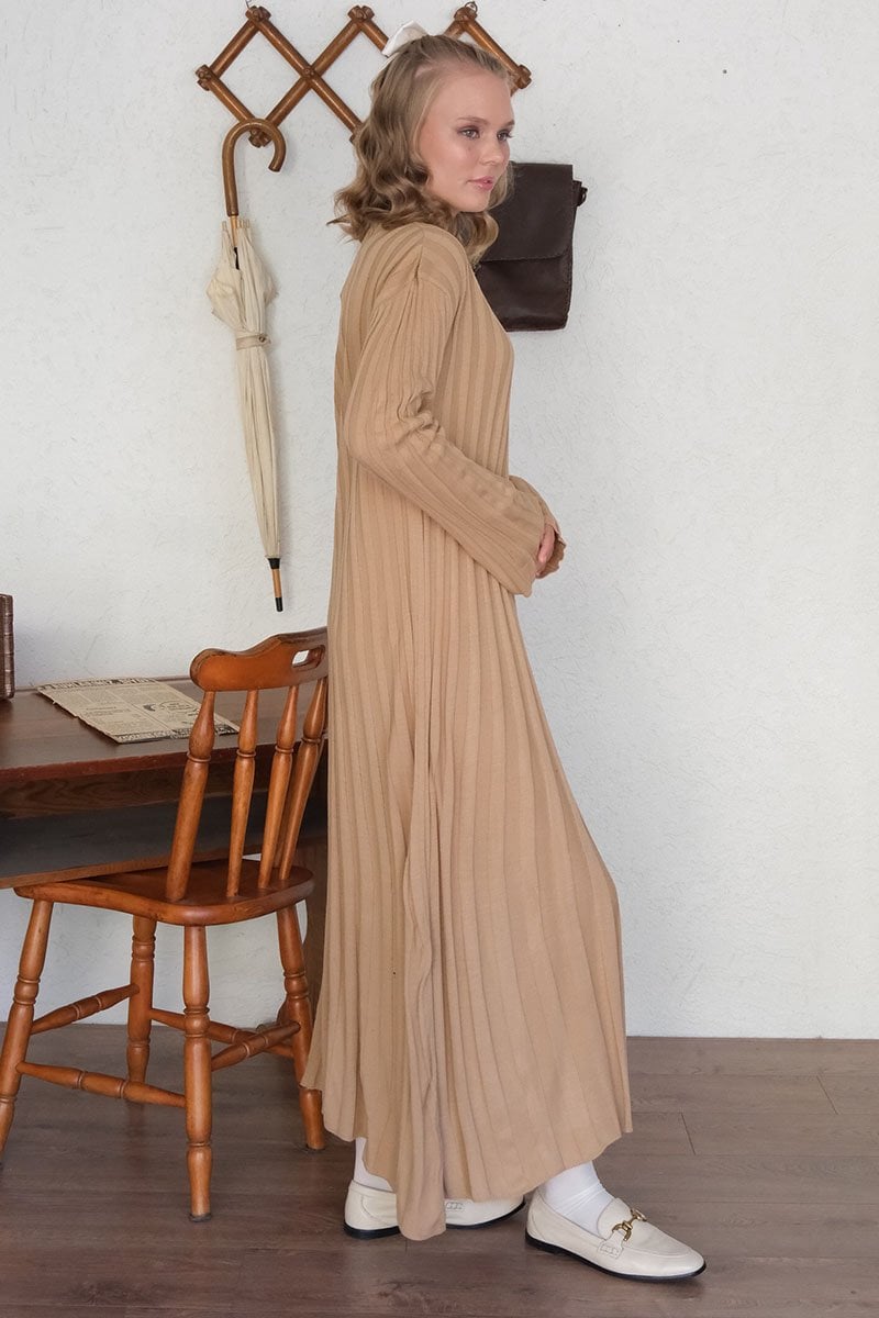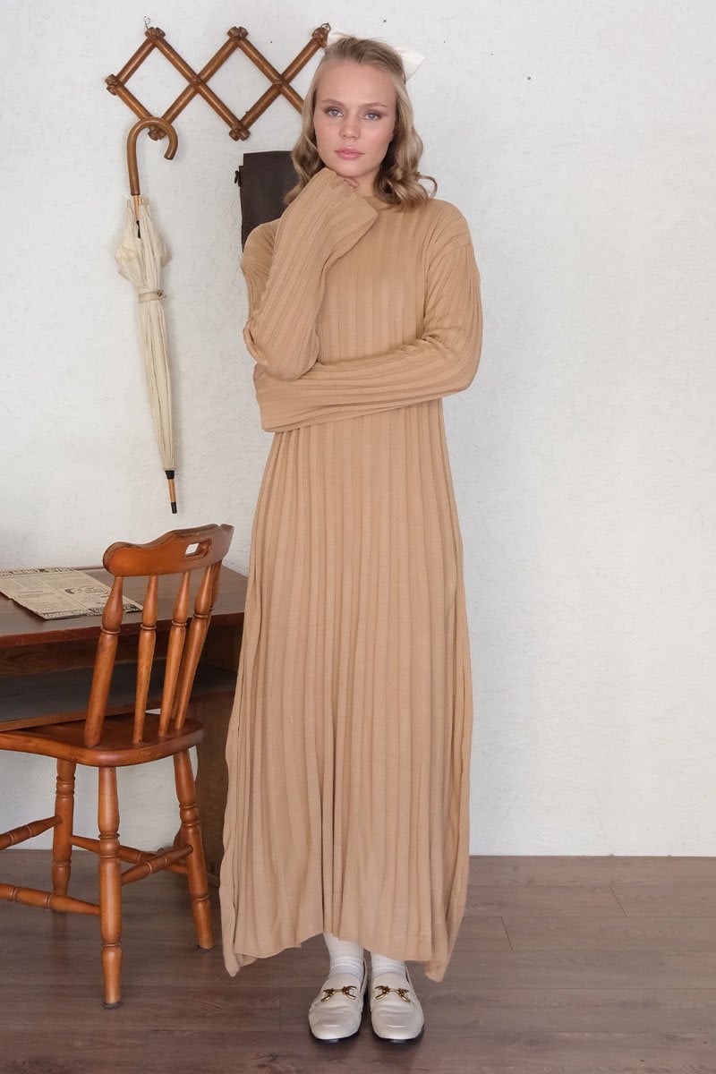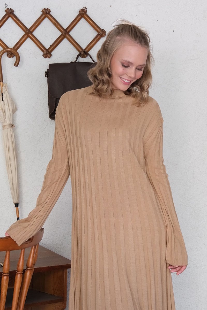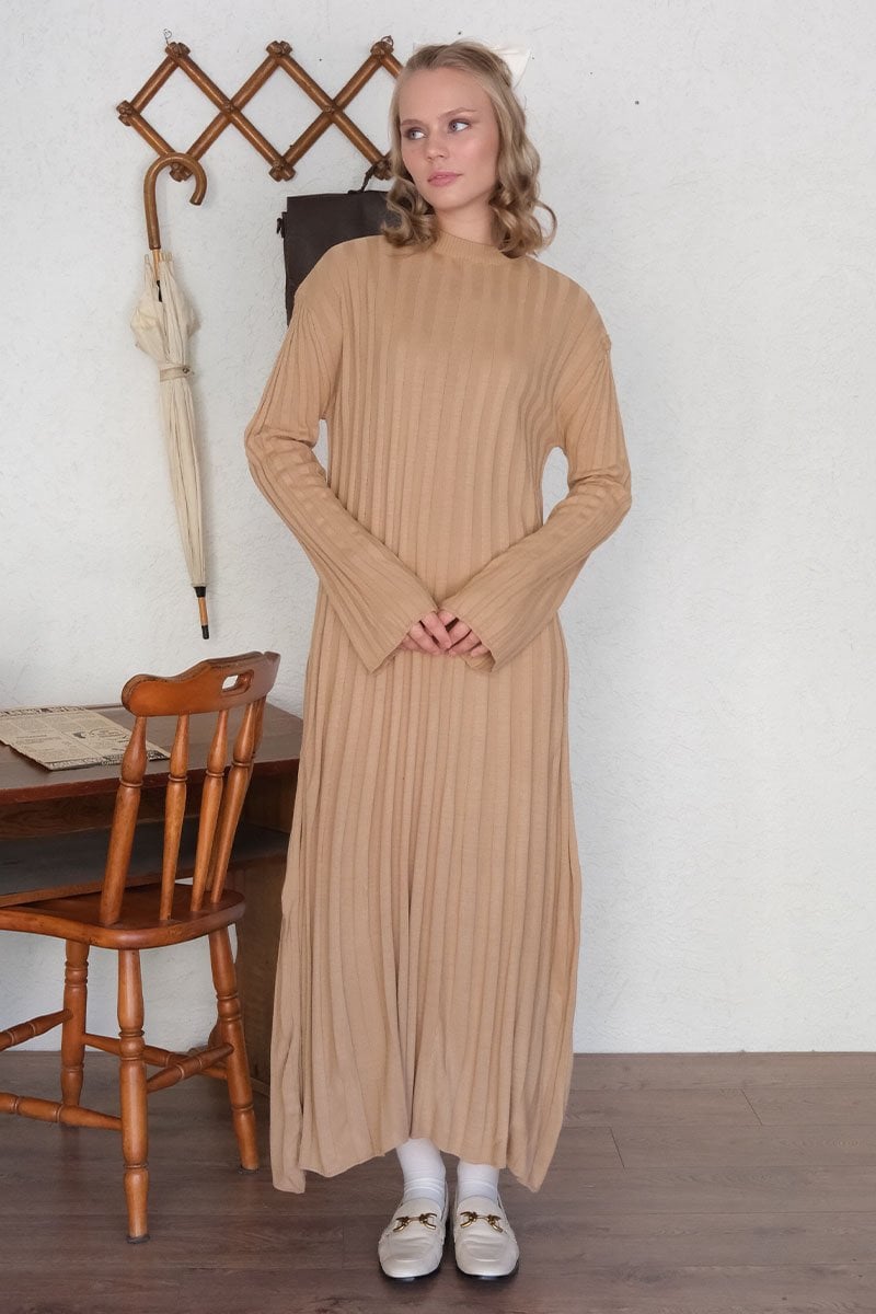 Sütlü Kahve Kloş Triko Elbise