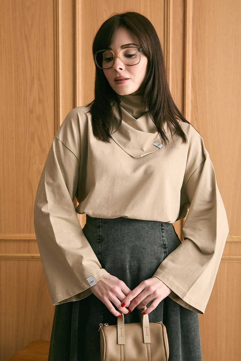 İnce kumaşı sayesinde gün boyu konfor sağlar, zarif fular detayı ise stilinize ince bir dokunuş katar.