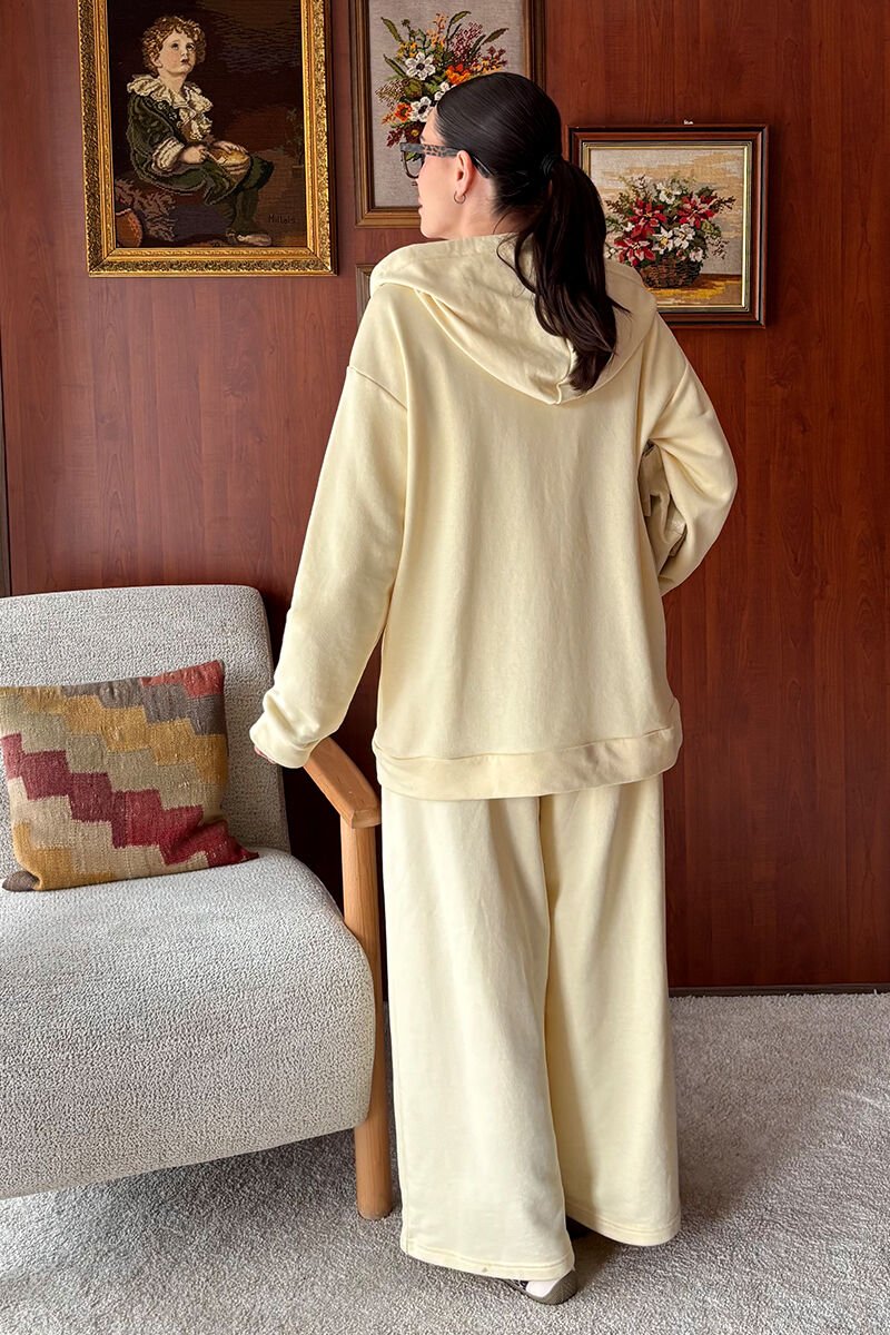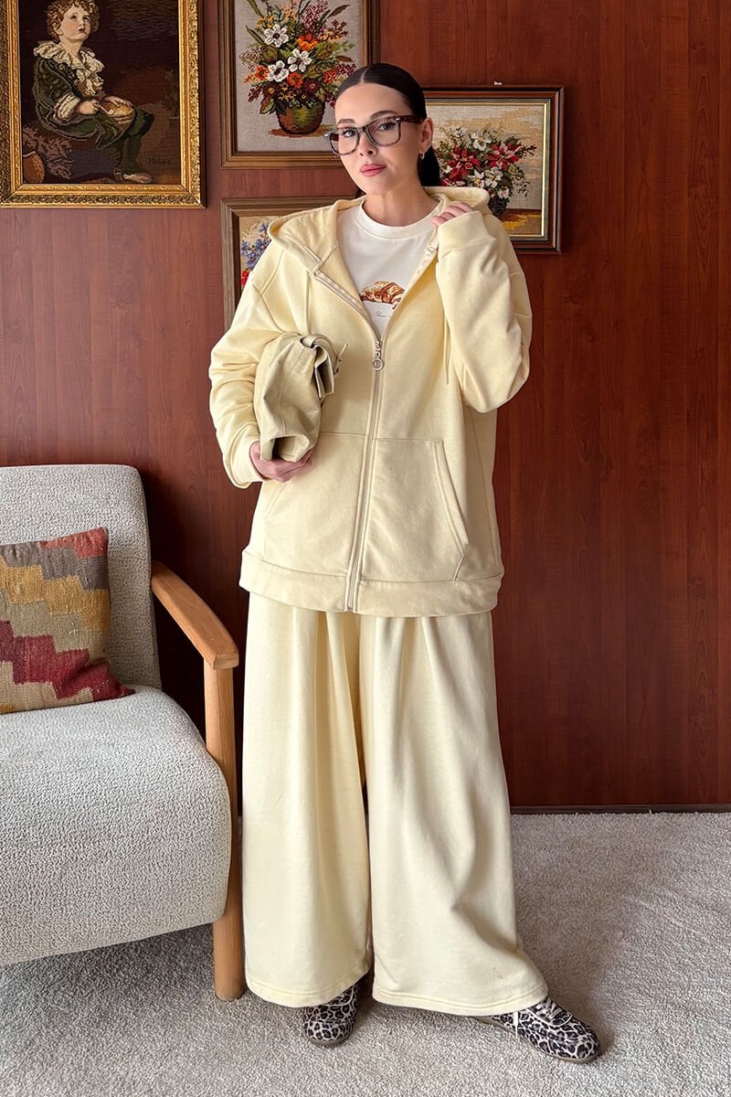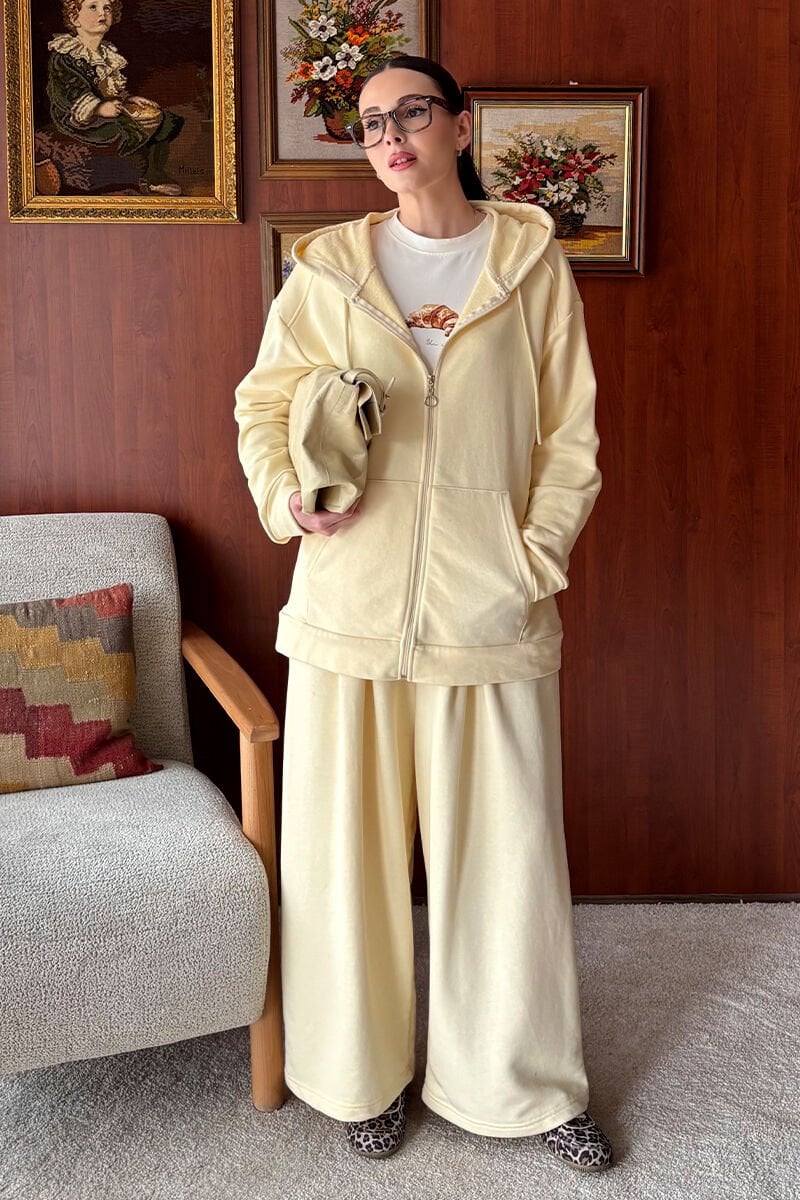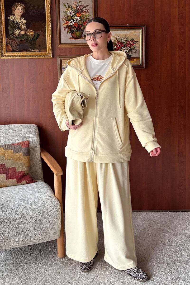 Terayağ Sarısı 3 İplik Uzun Fermuarlı Eşofman Takım