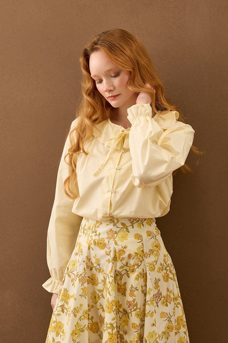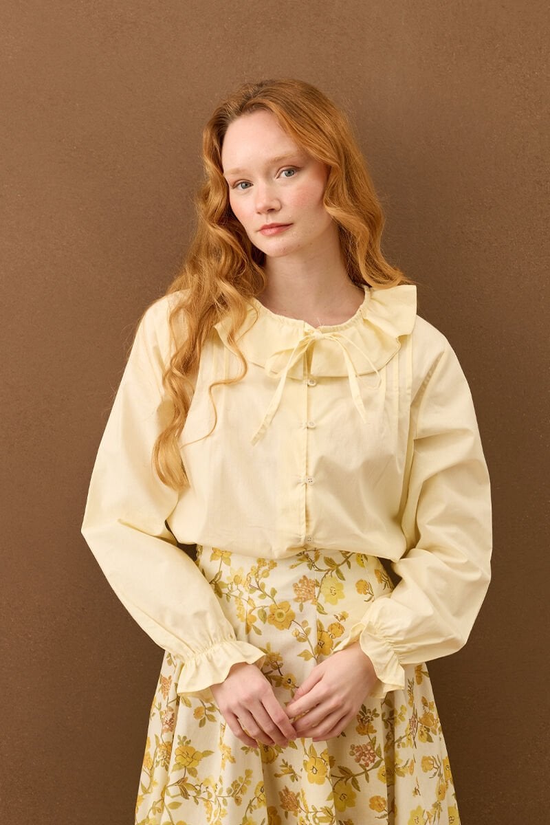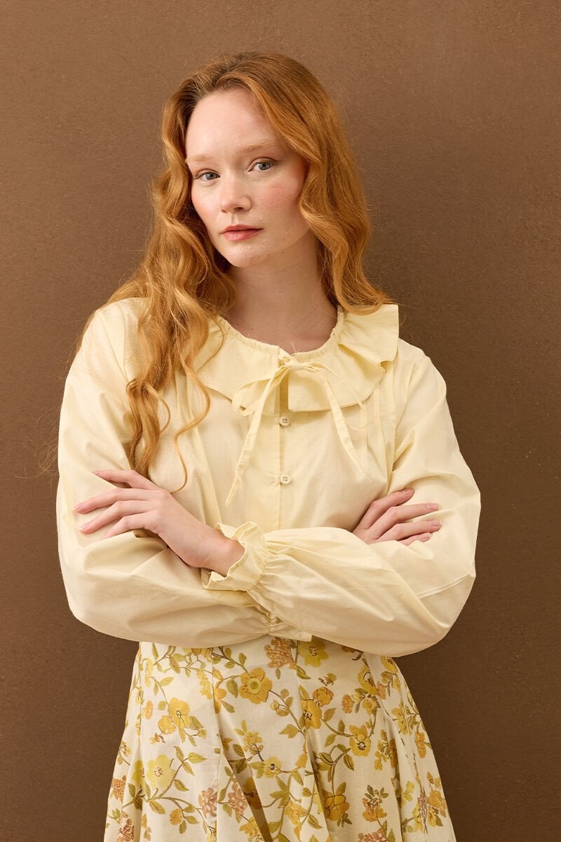 Açık Sarı Bebe Yaka Fiyonklu Gömlek