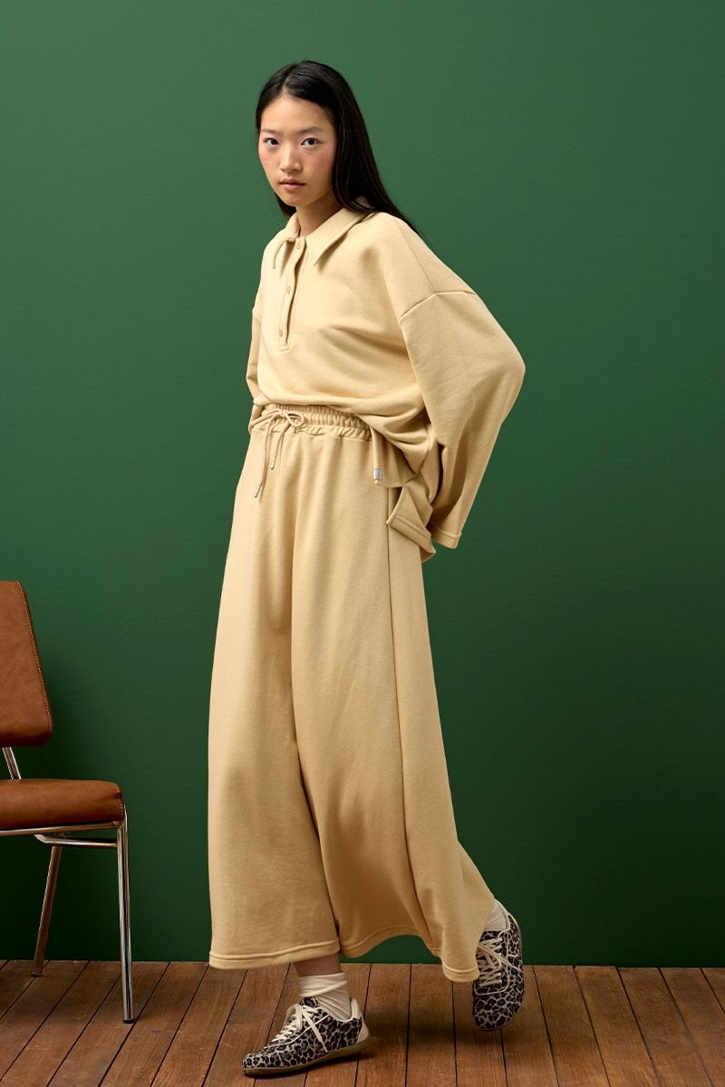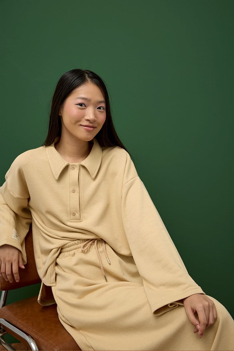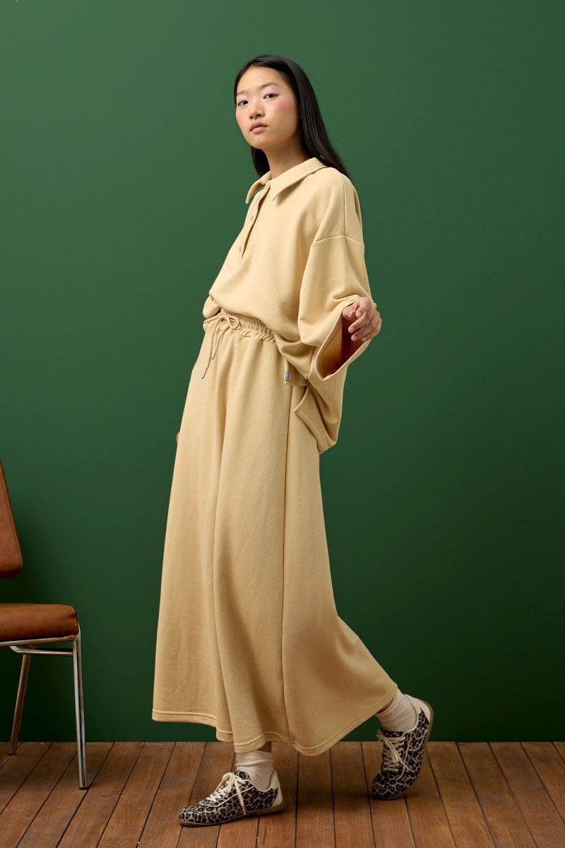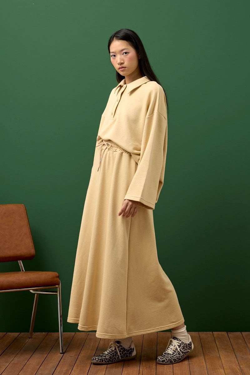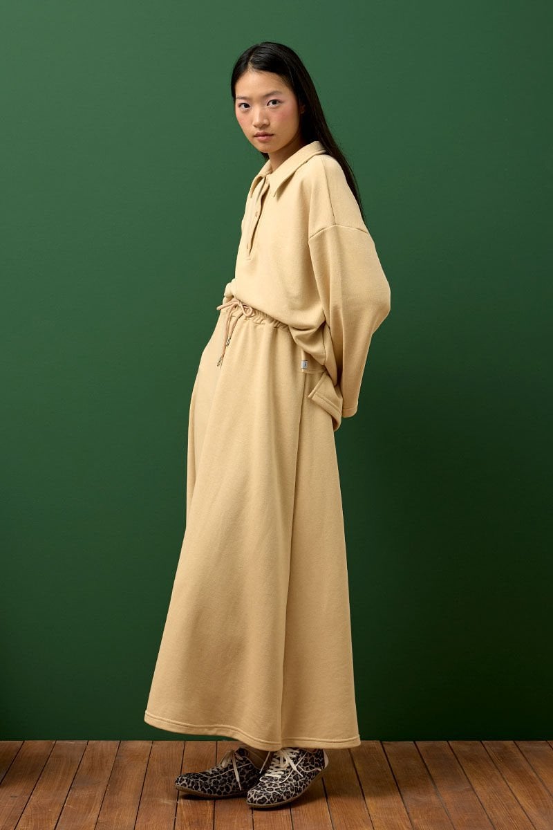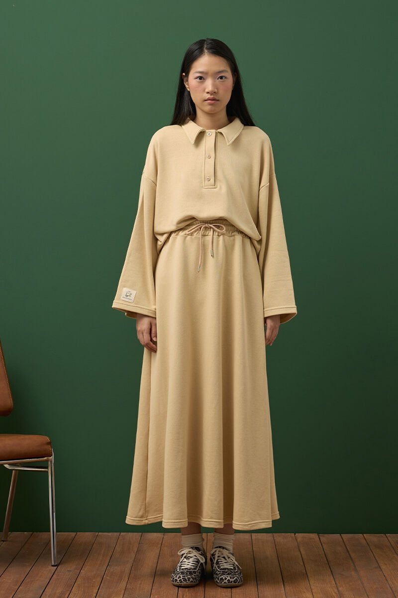 Bej 3 İplik Polo Yaka Body & Etek Takım