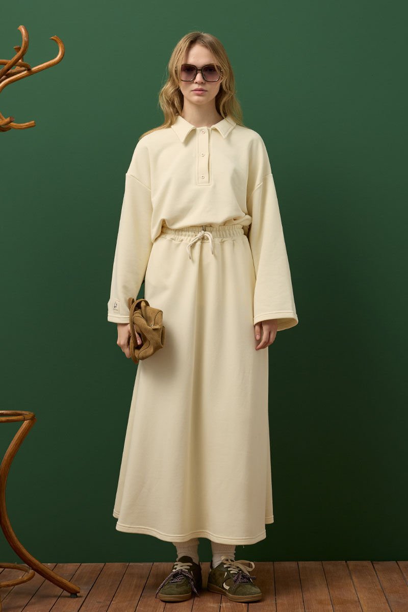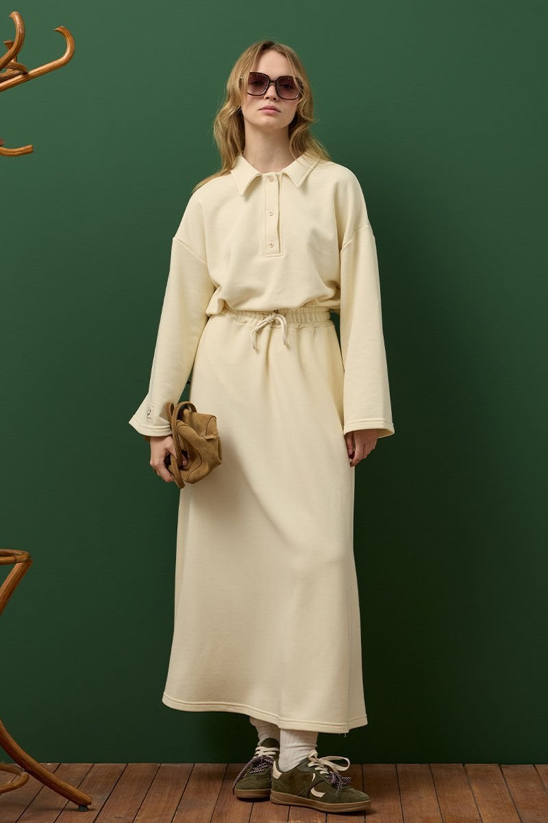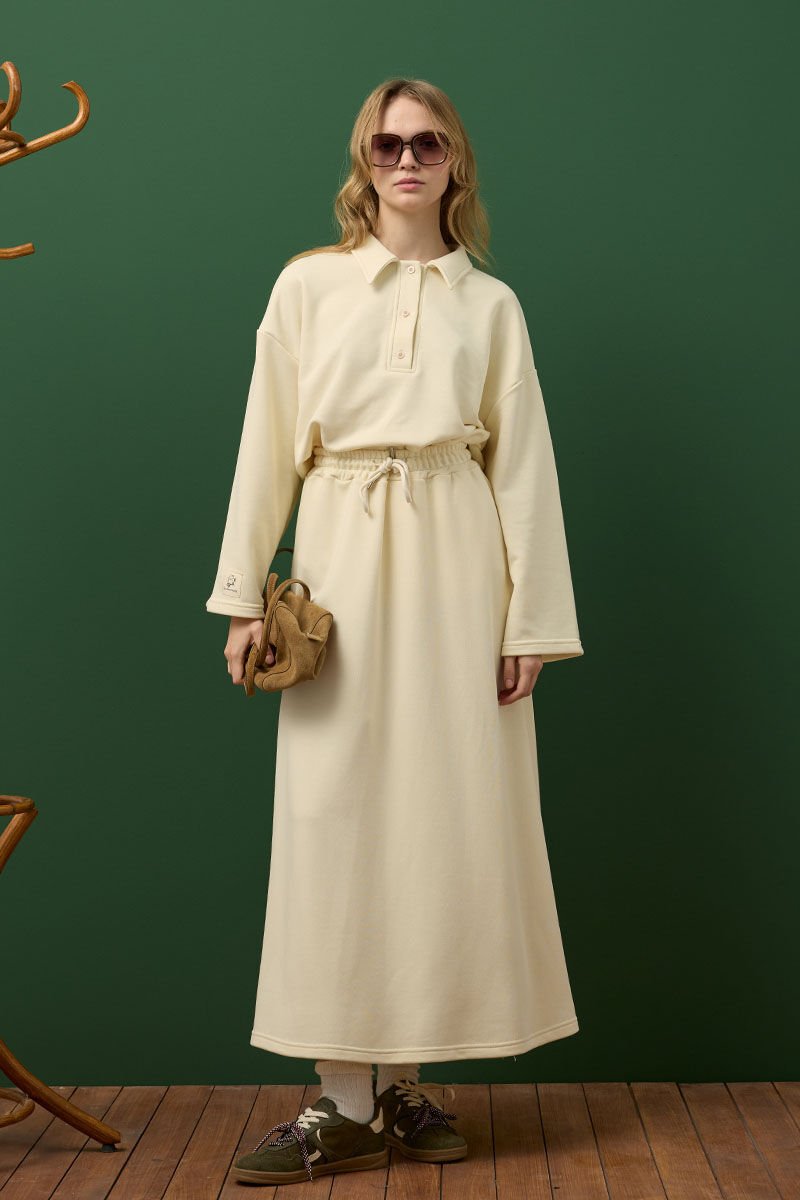 Tereyağ Sarısı 3 İplik Polo Yaka Body & Etek Takım