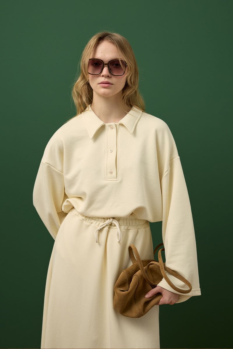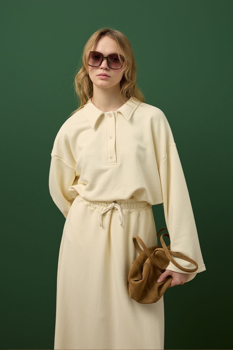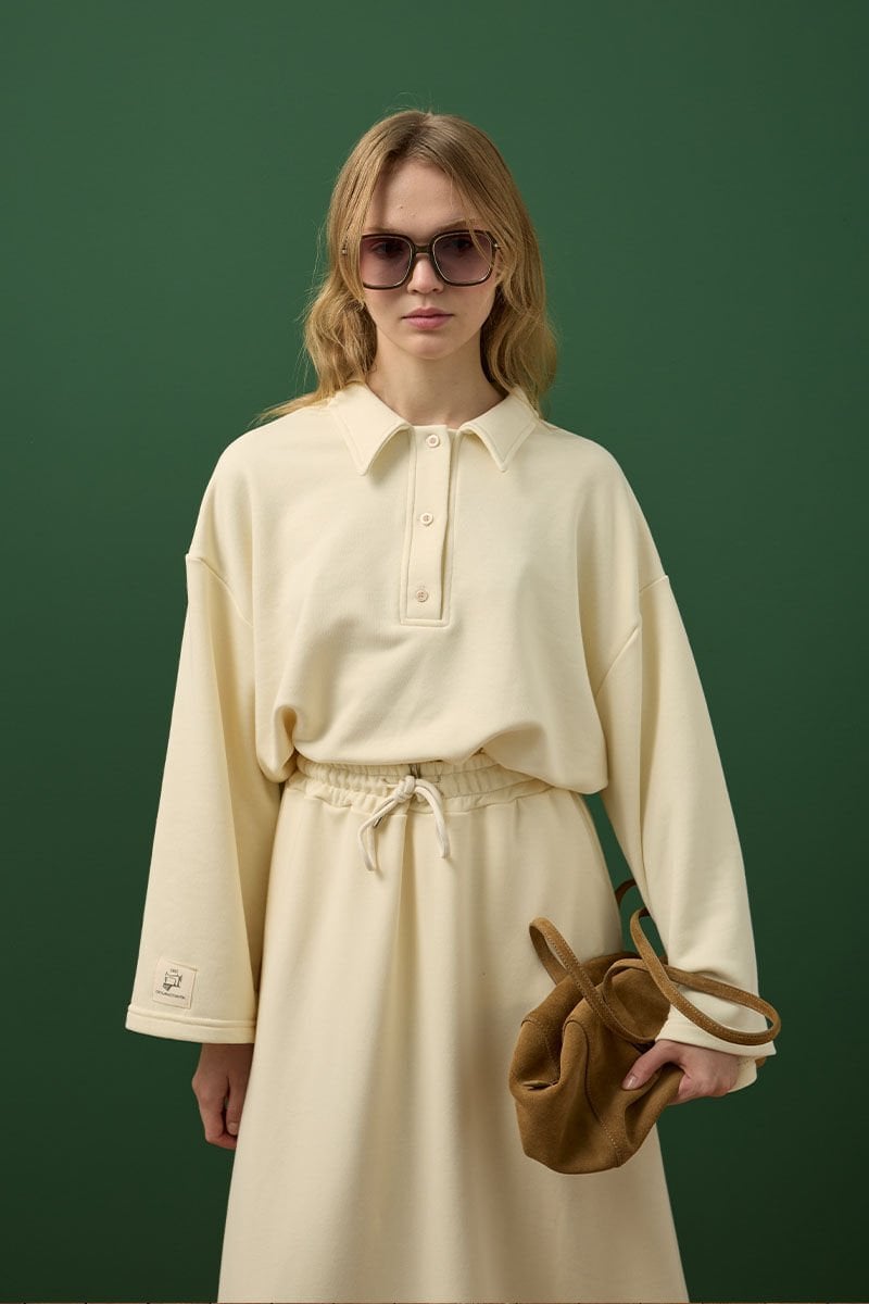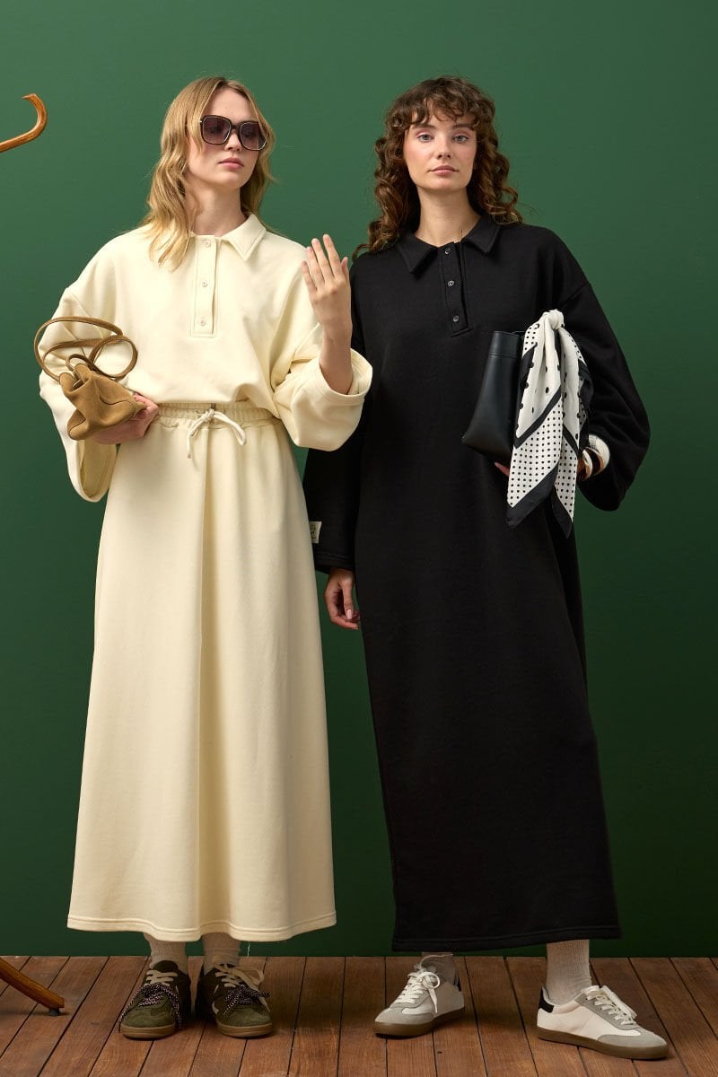 Tereyağ Sarısı 3 İplik Polo Yaka Body & Etek Takım