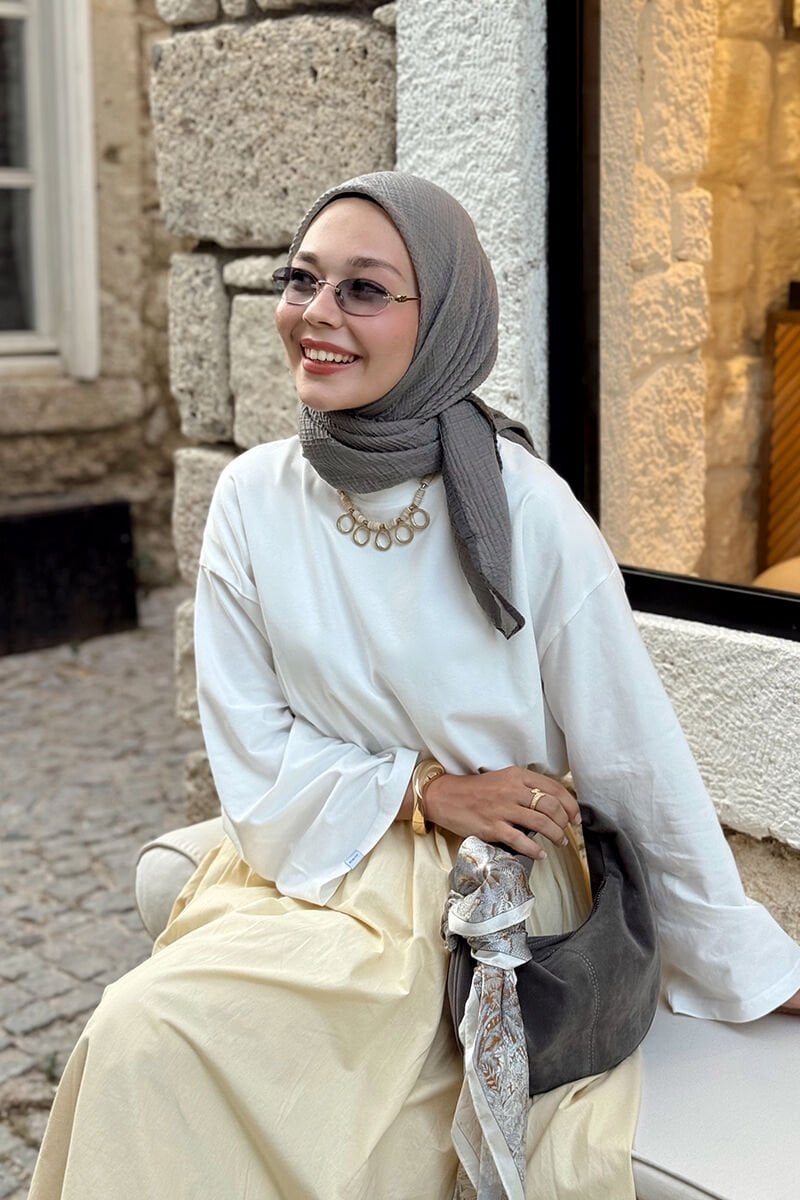 Fiyonk detaylı crop gömlek ve balon etek kombinasyonuyla dikkat çekici bir görünüm elde edebilirsin.