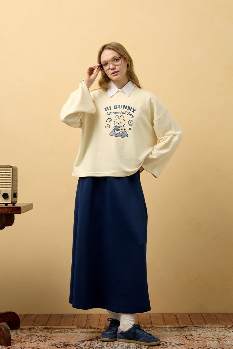 Tereyağ Sarısı Tavşan Baskılı 3 İp Body