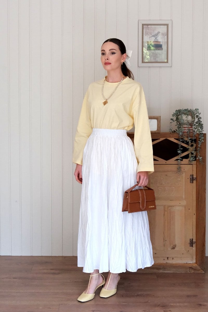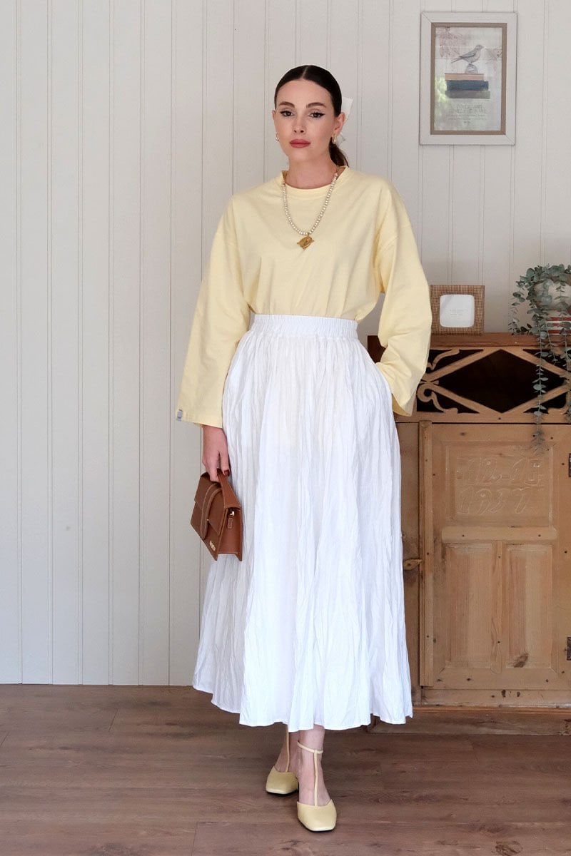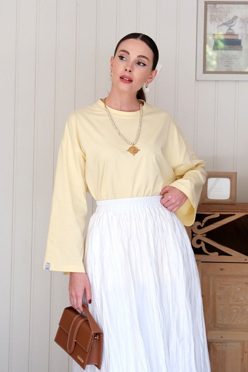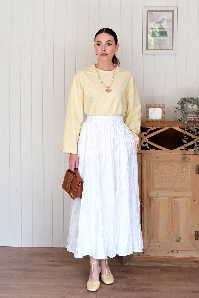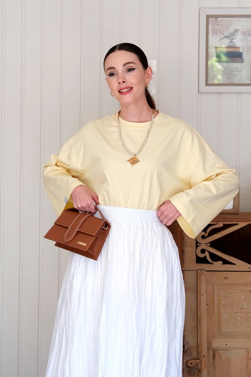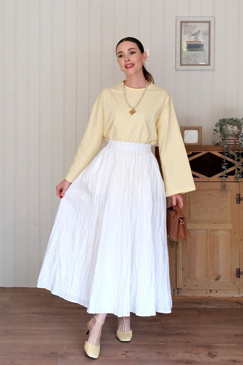 Tereyağ Sarısı Body & Beyaz Kraşlı Balon Etek Takım