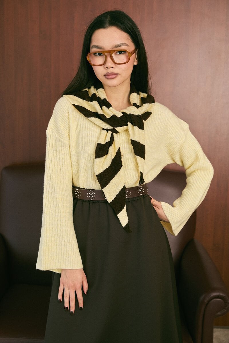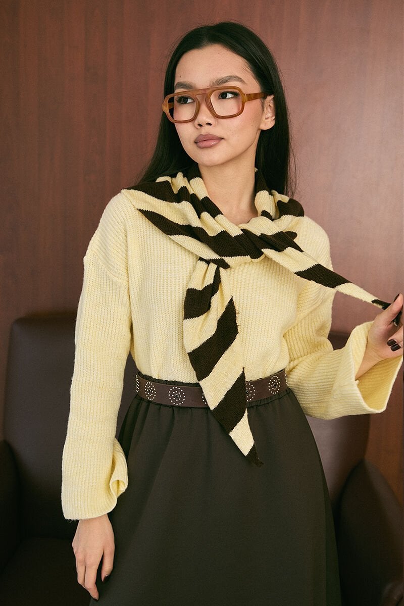Çizgili atkı, her kombine modern bir dokunuş katar.