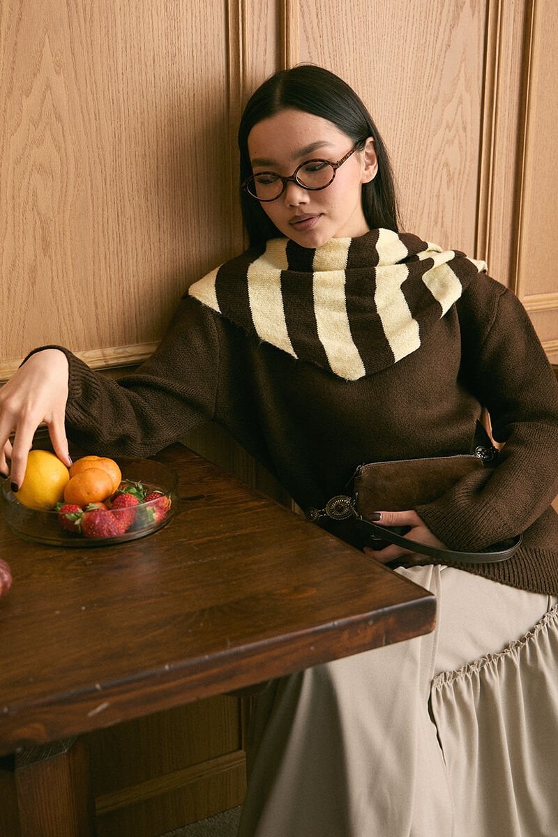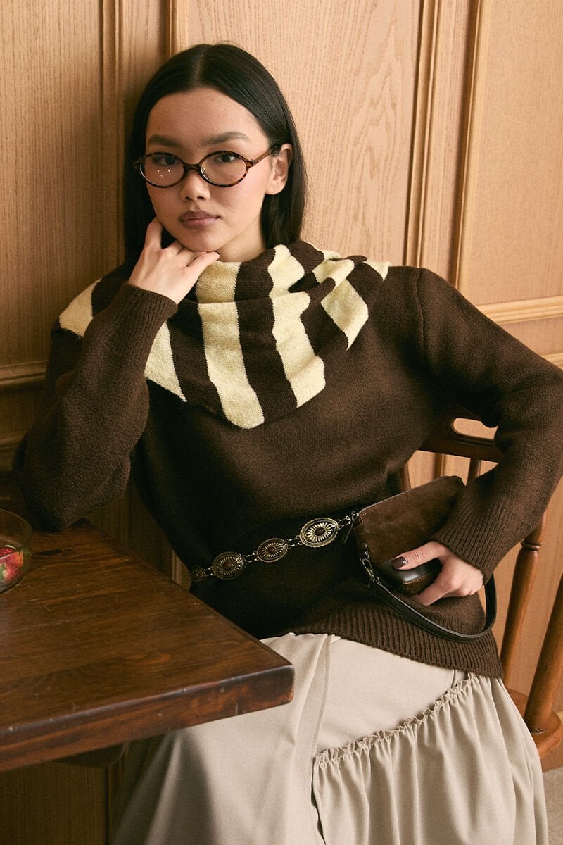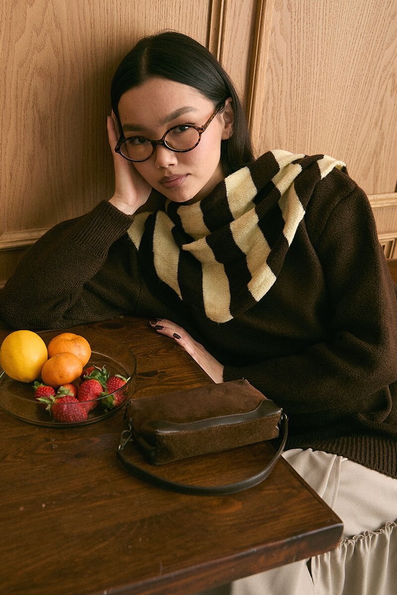 Çizgili atkı, her kombine modern bir dokunuş katar.