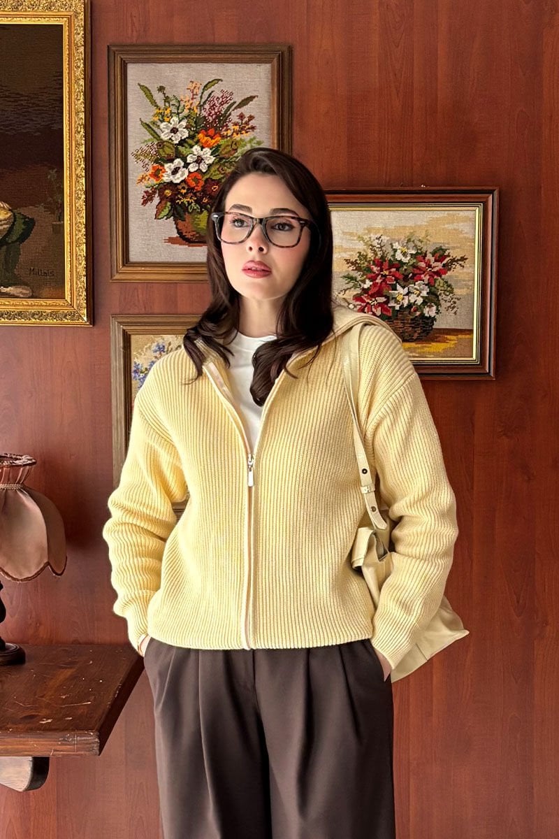 Tereyağ Sarısı Fermuarlı Triko Hırka