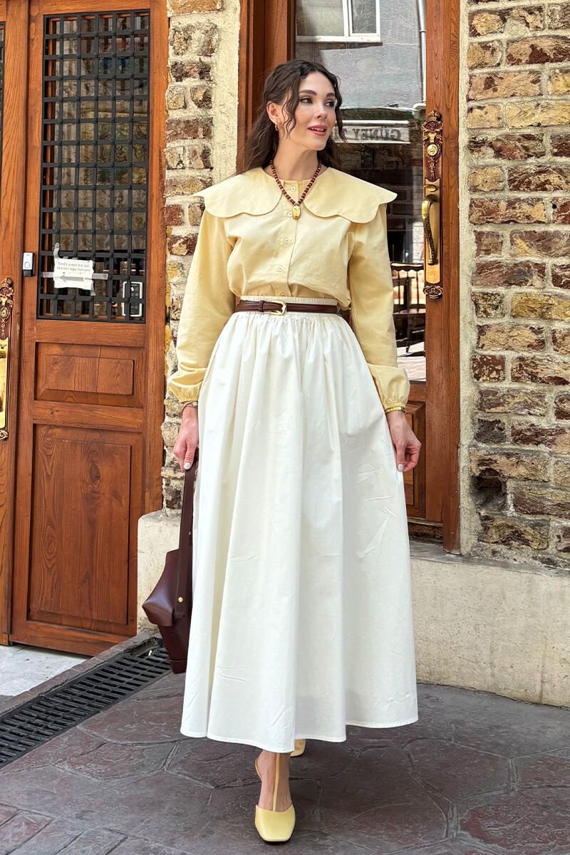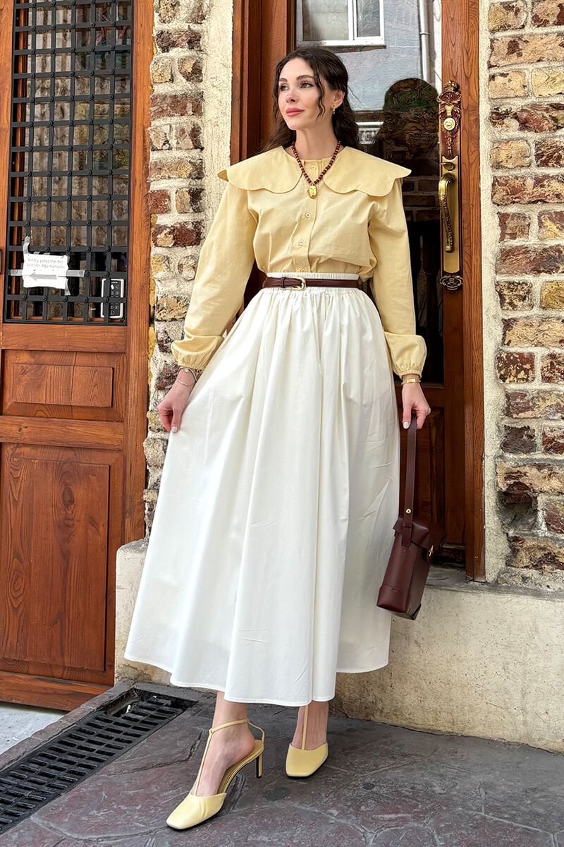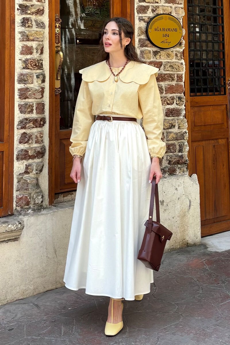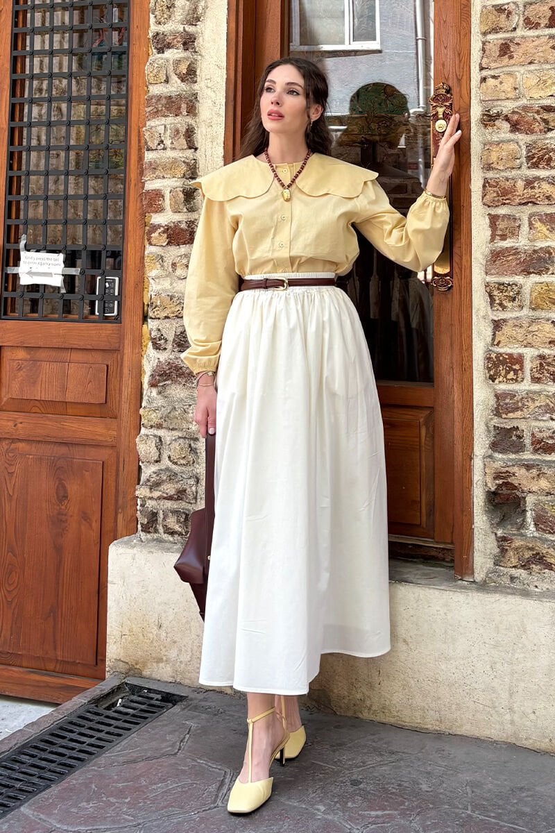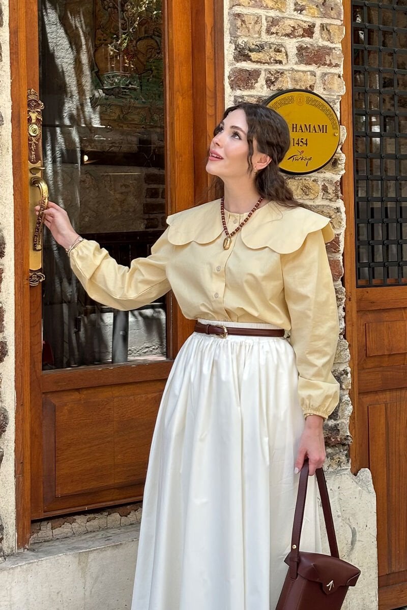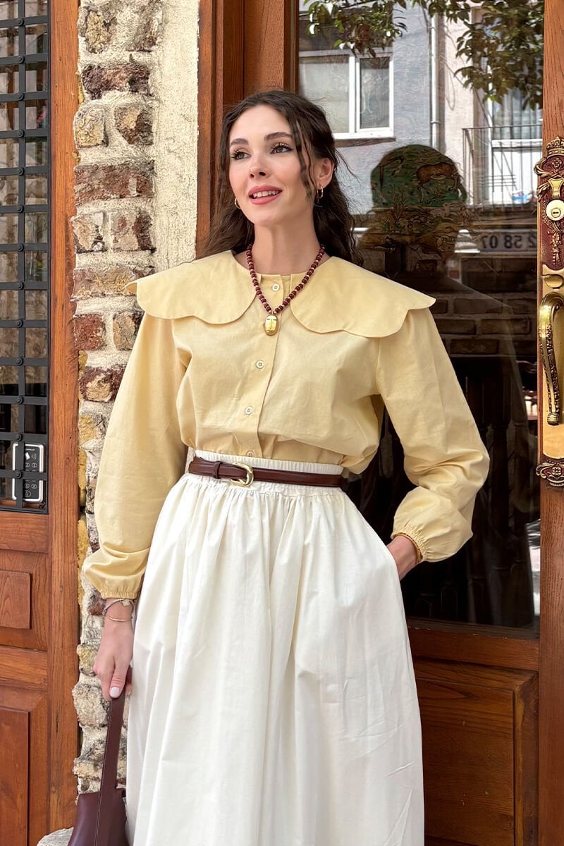 Tereyağ Sarısı Papatya Yaka Crop Gömlek