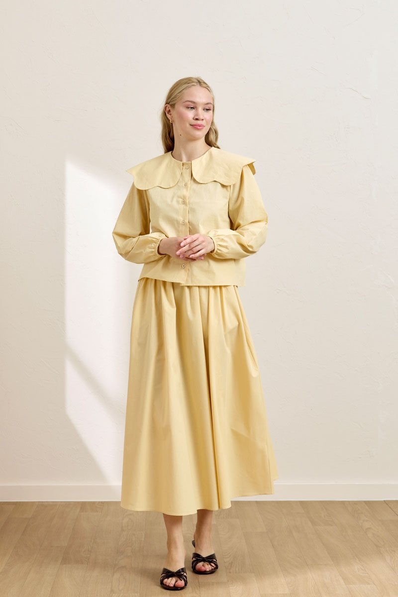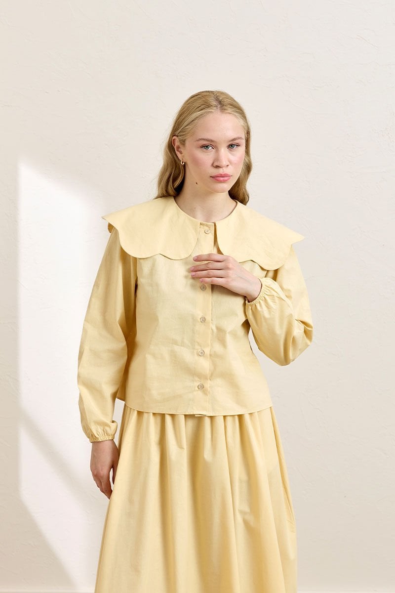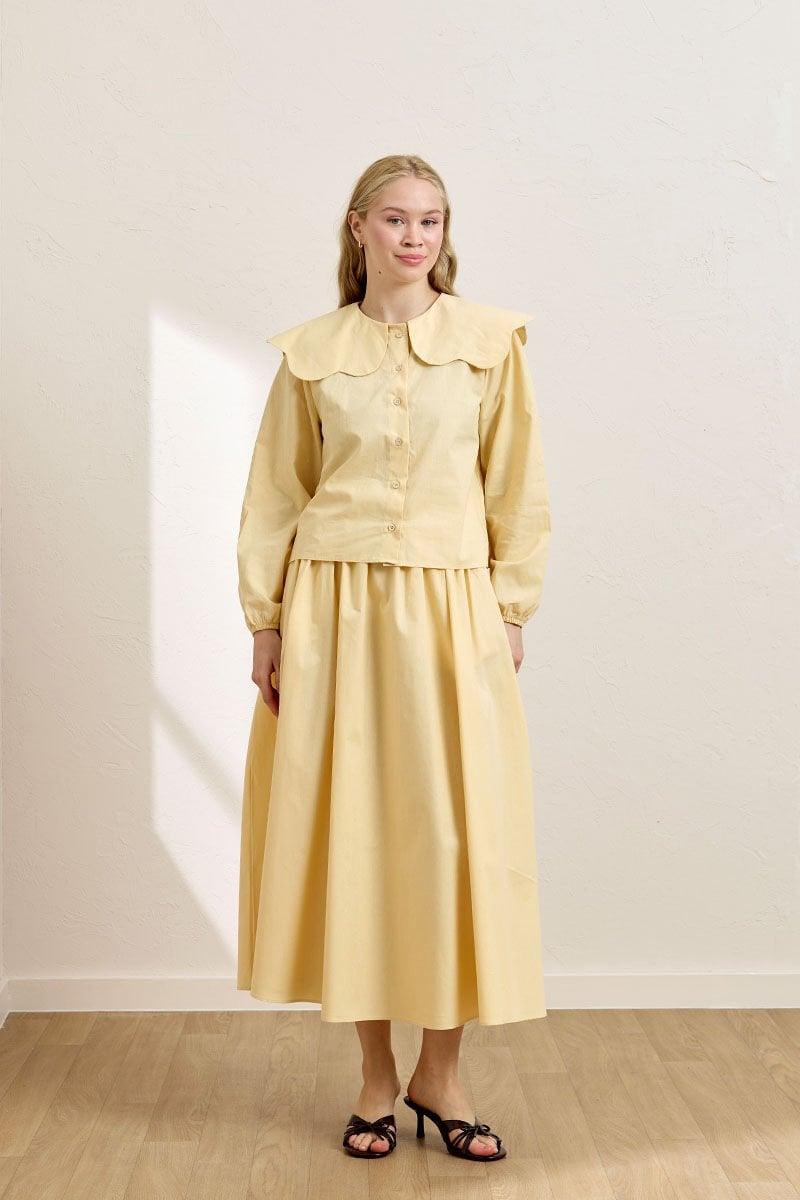 Tereyağ Sarısı Papatya Yaka Crop Gömlek & Balon Etek
