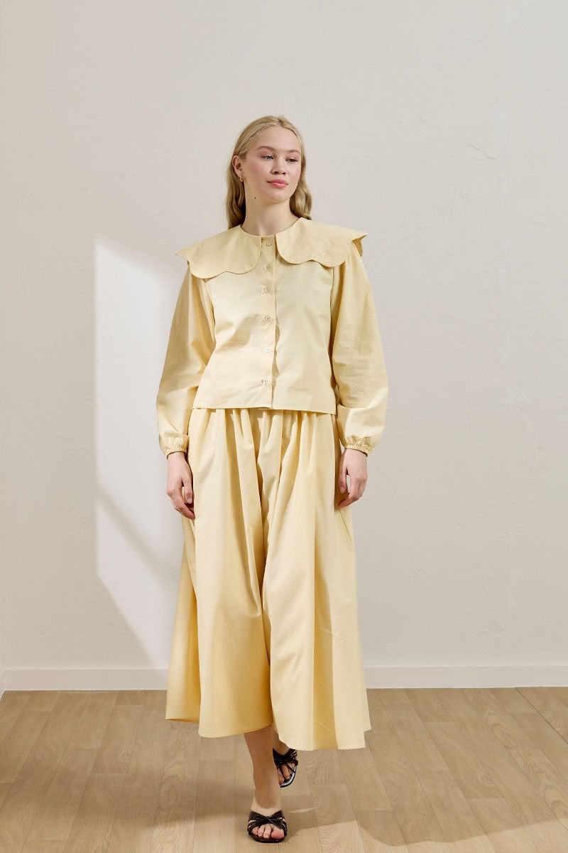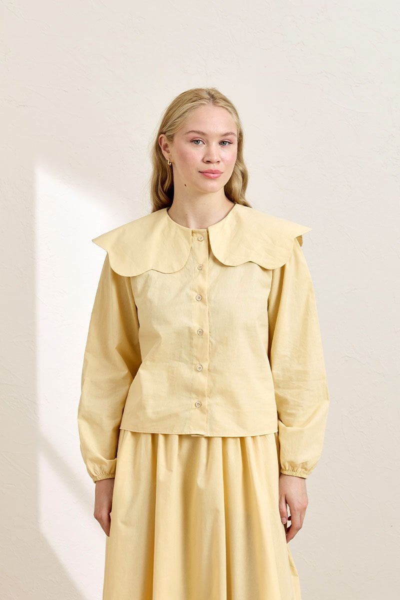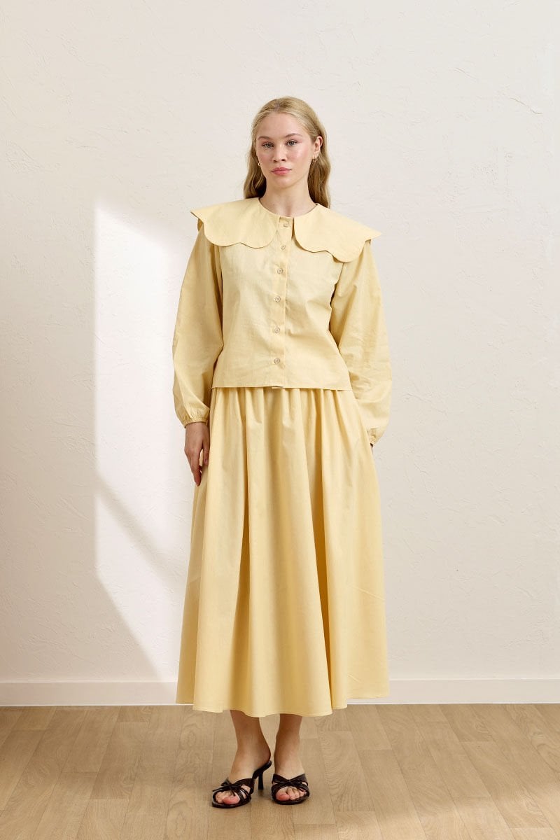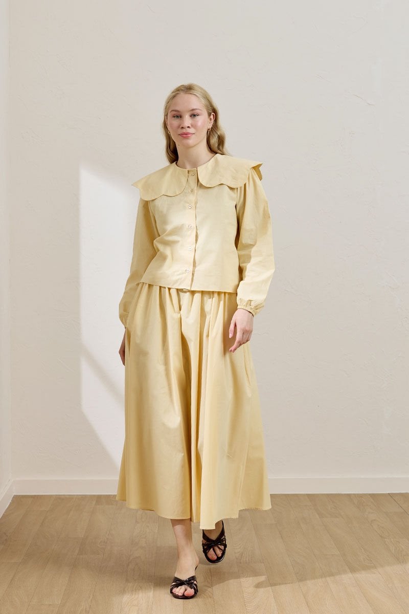 Tereyağ Sarısı Papatya Yaka Crop Gömlek & Balon Etek