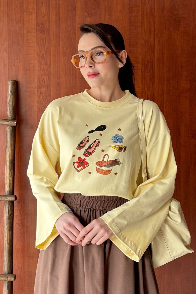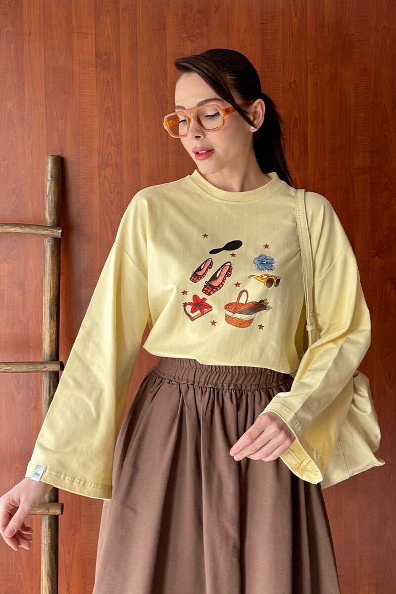 Tereyağ Sarısı Sepet Baskılı Basic Body