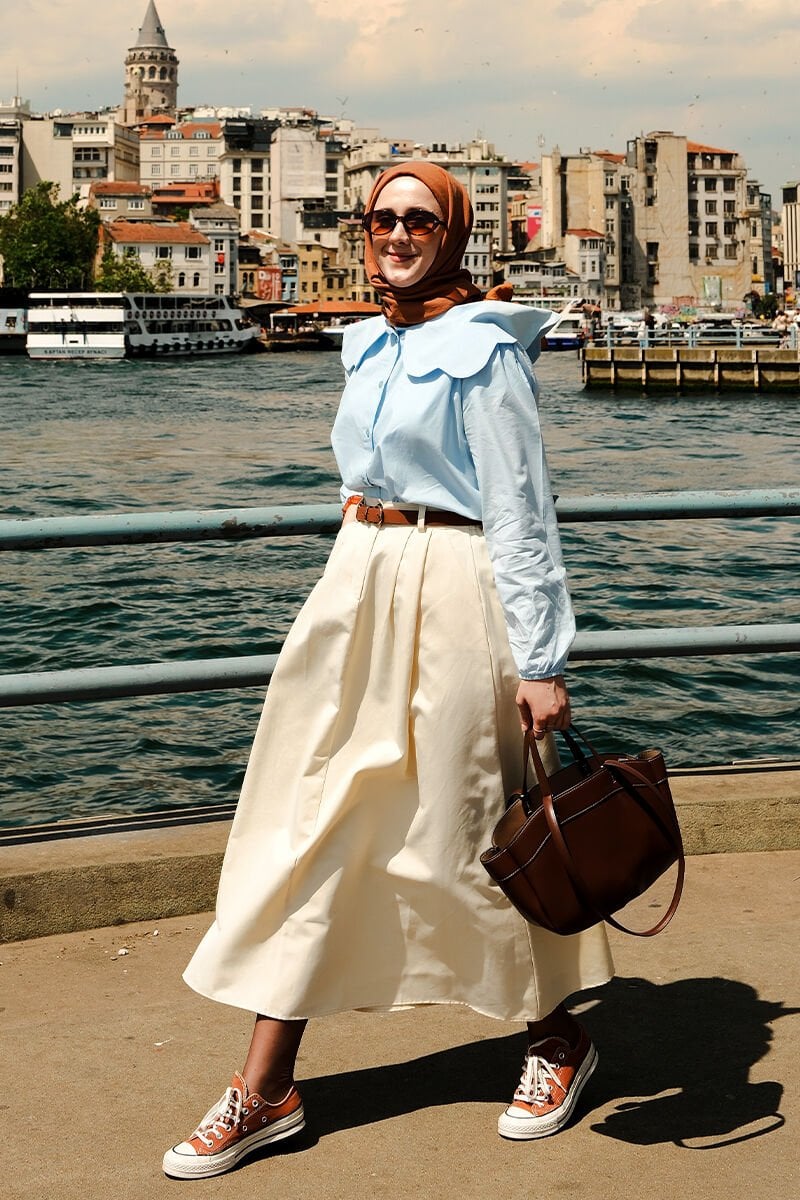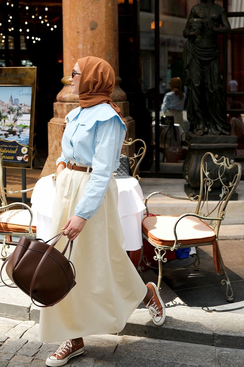 Tereyağ Sarısı Tek Düğmeli Keten Etek