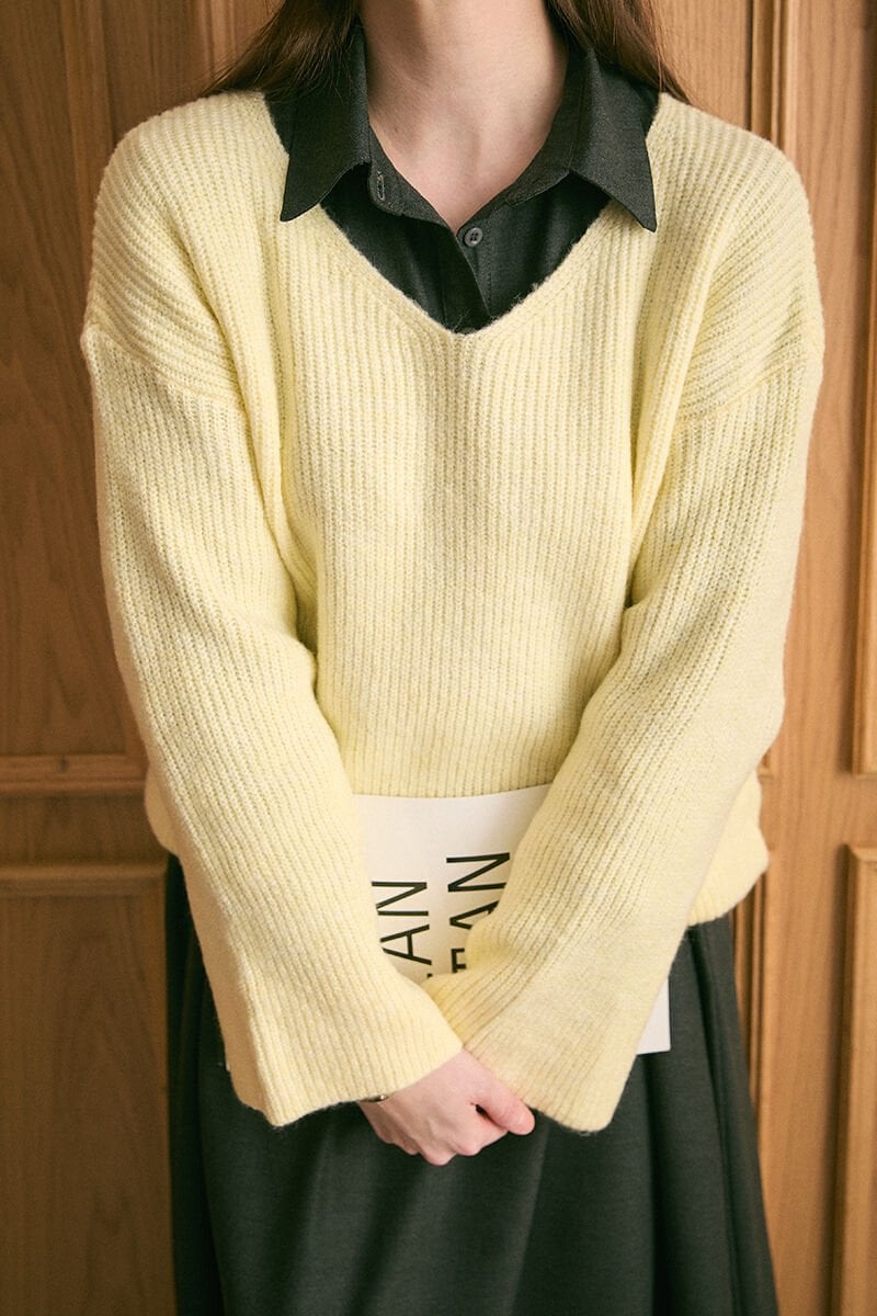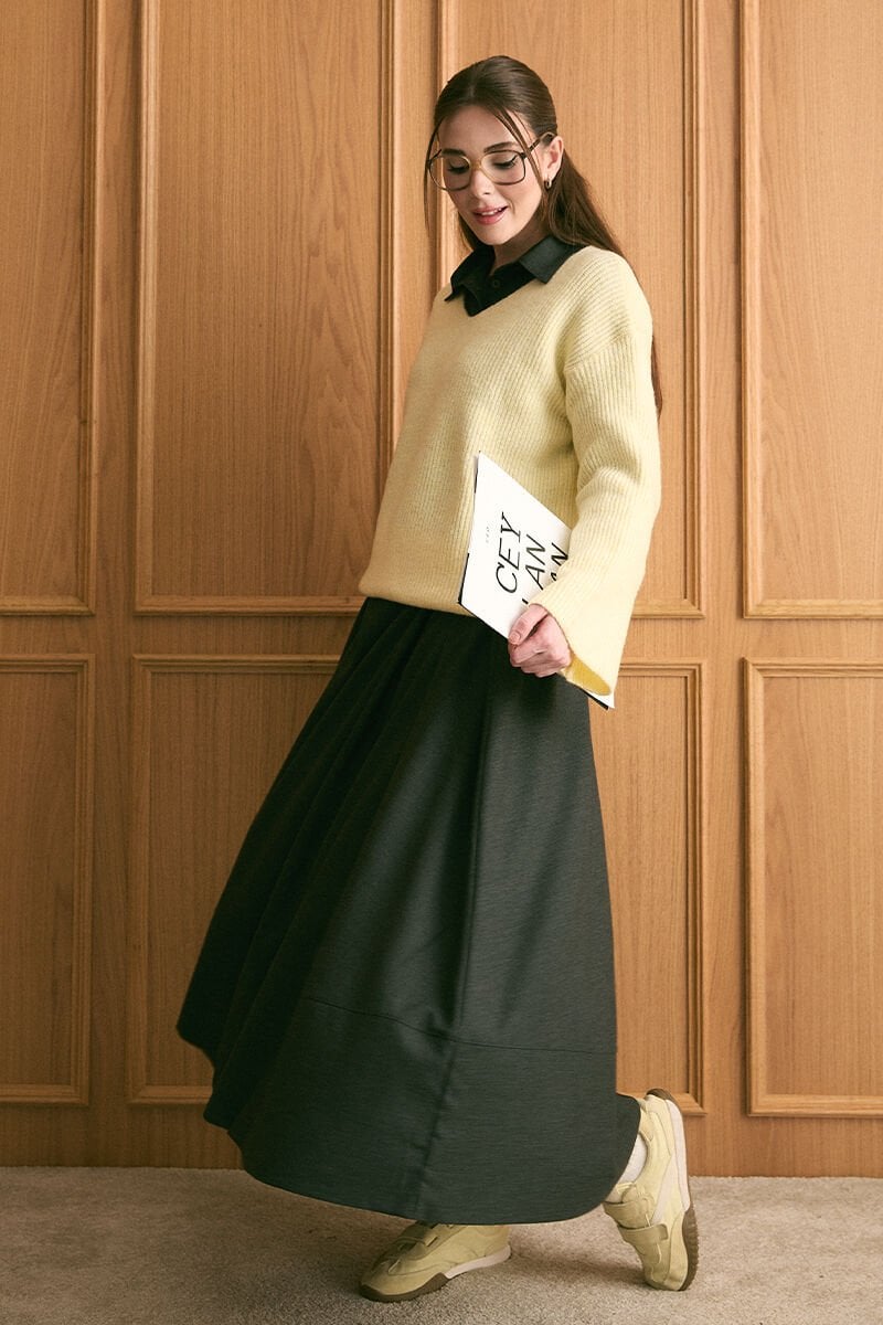 Tereyağ Sarısı V Yaka Triko Kazak & Antrasit Vintage Elbise Takım