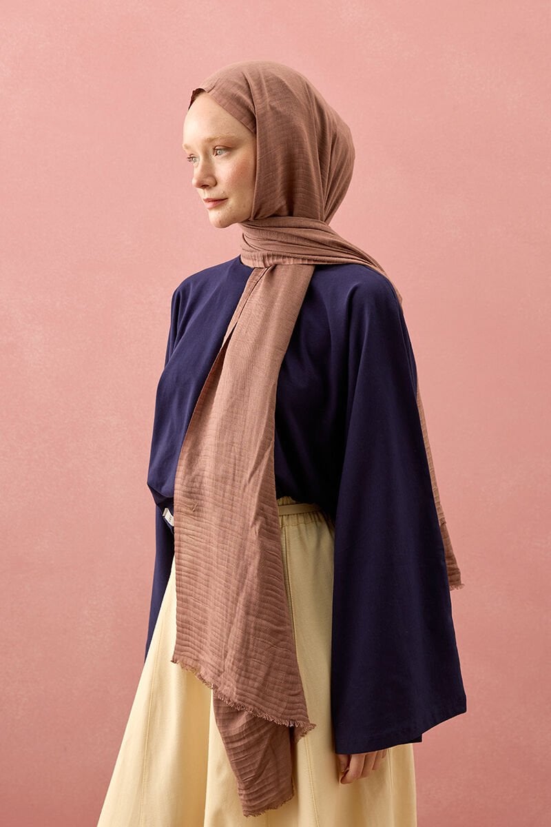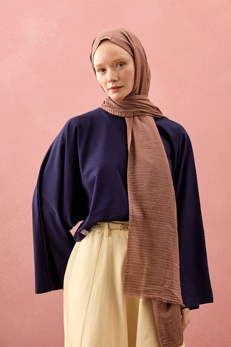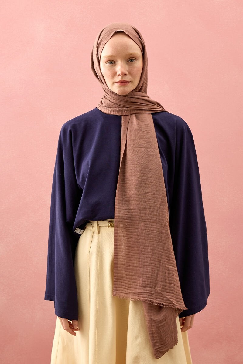 Narin dokusu ve hafif yapısıyla müslin şal, hem şıklığınızı hem konforunuzu tamamlar.
