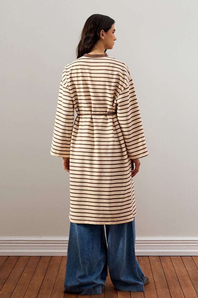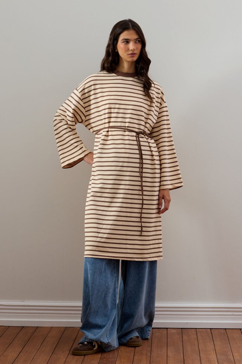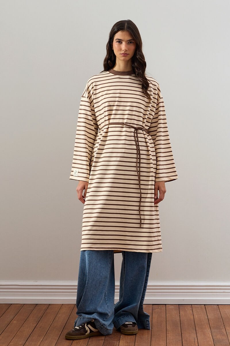 Acı Kahve 2 İplik Tesettür Çizgili Tunik