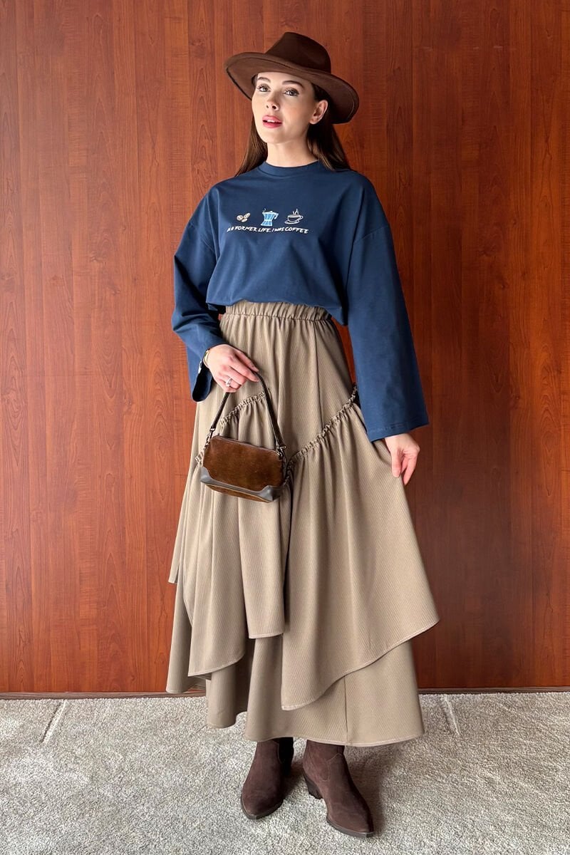Vizon Çizgili Poliviskon Bohem Kat Etek