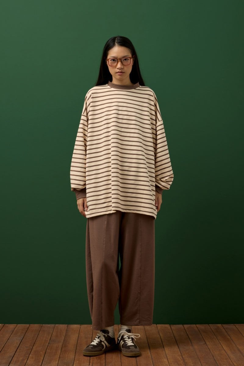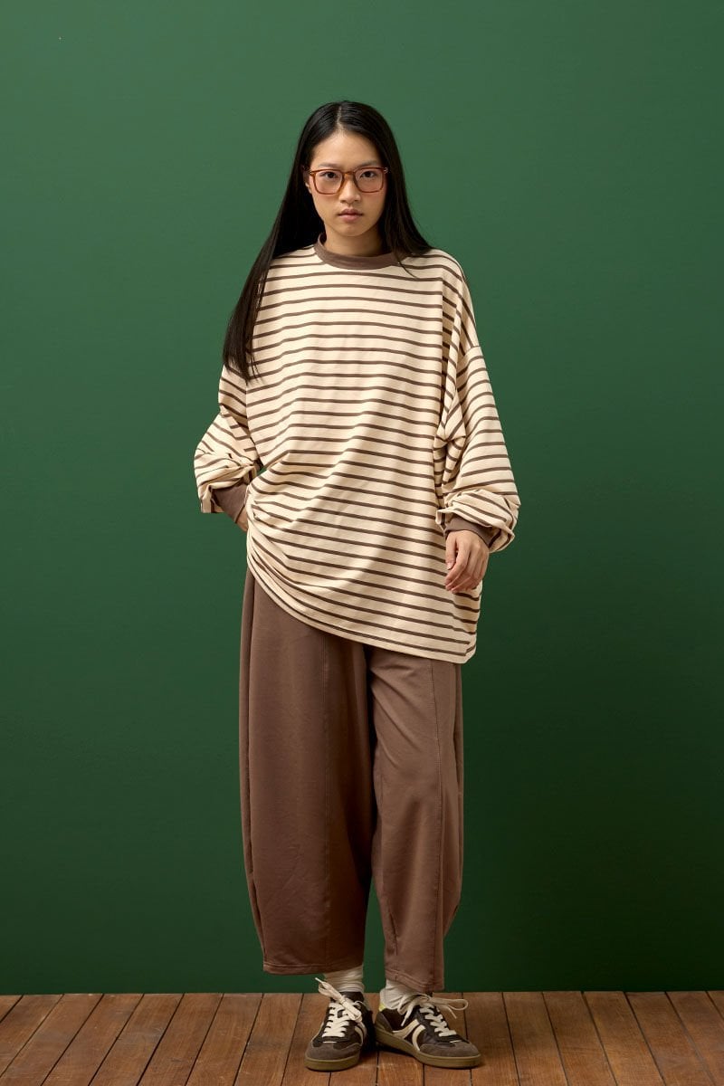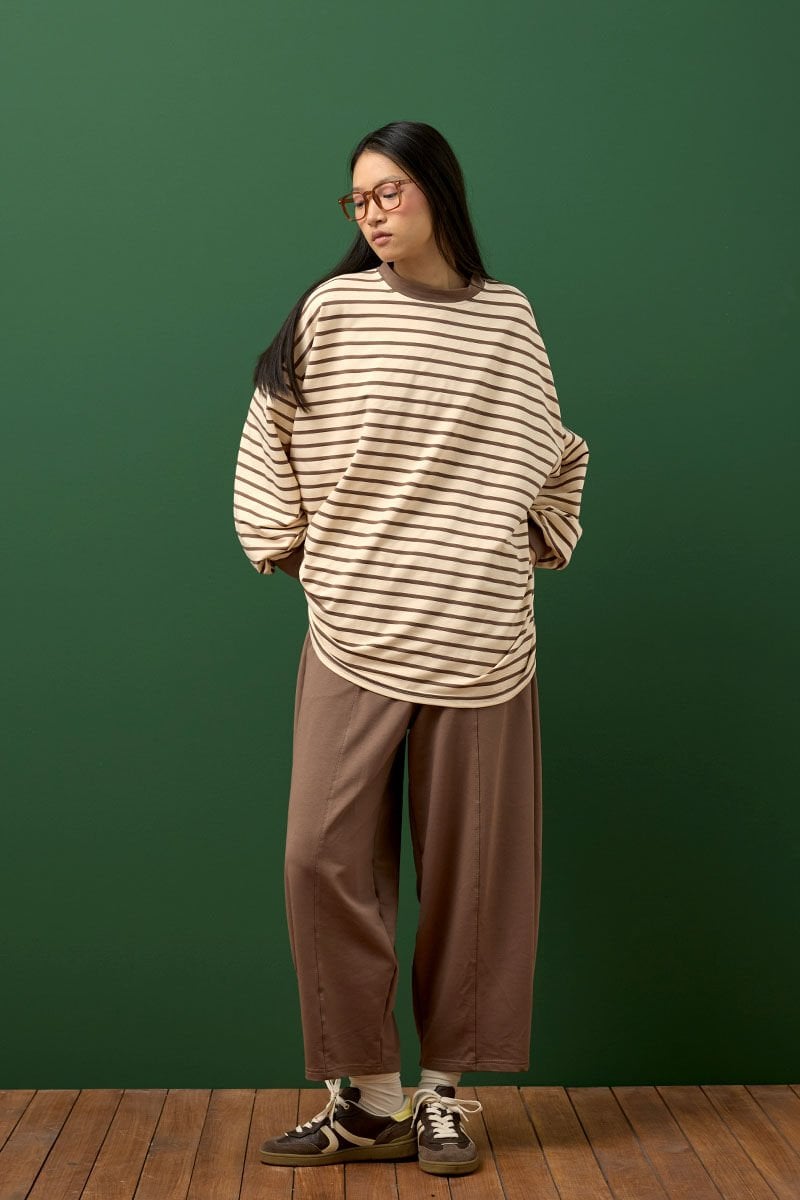 Acı Kahve Çizgili Sweat & Şalvar Pantolon Takım