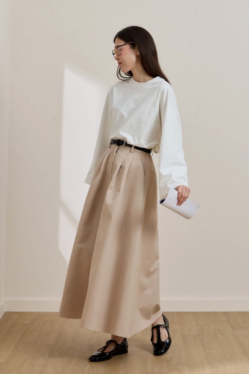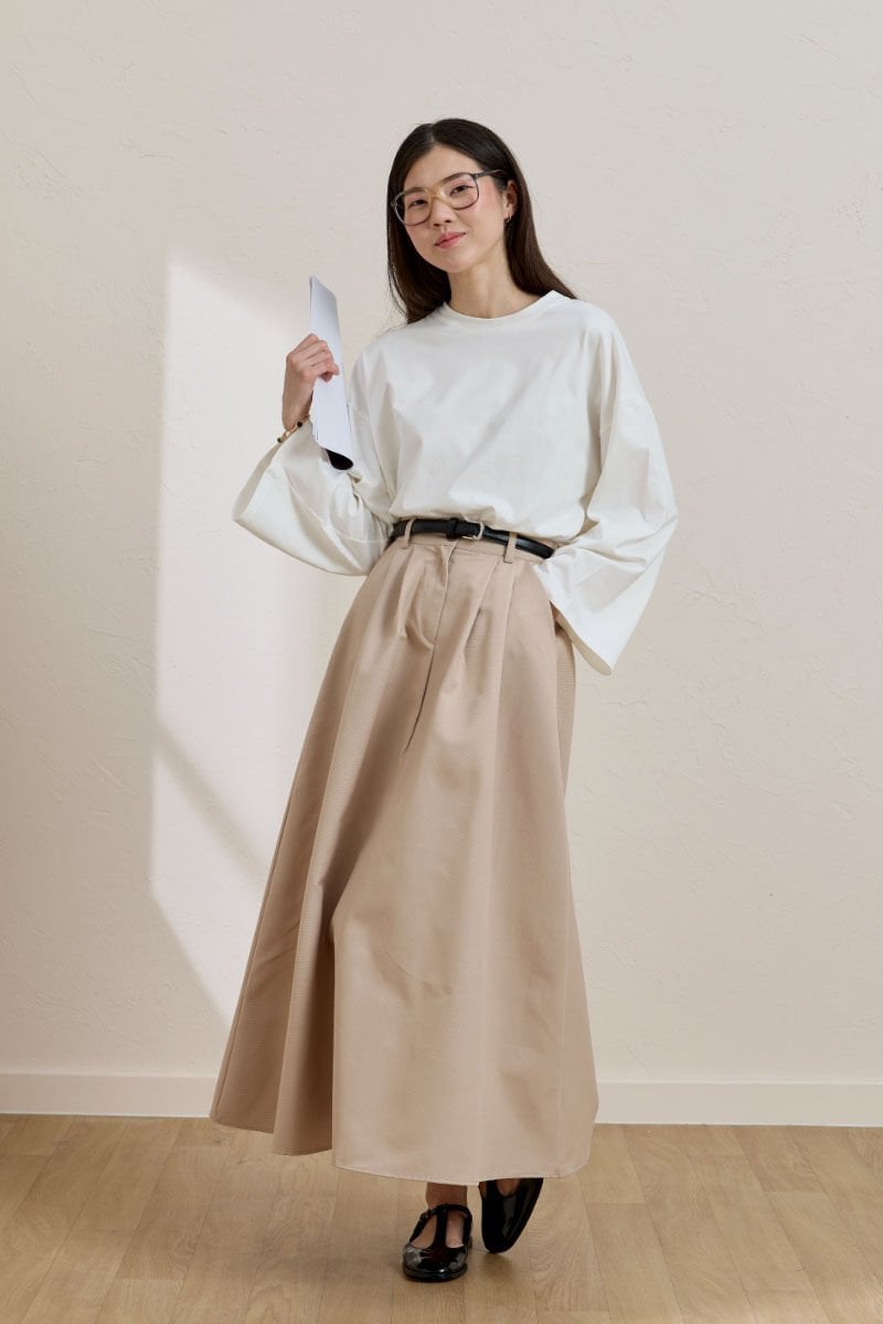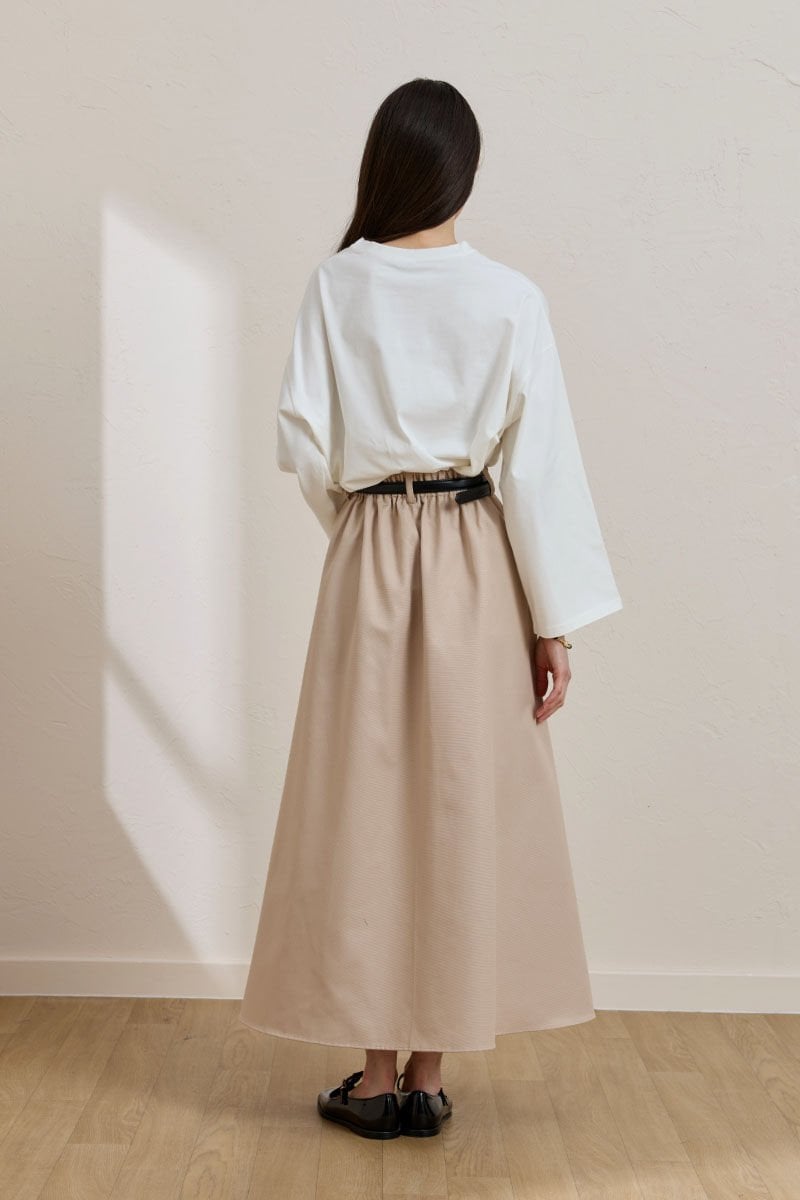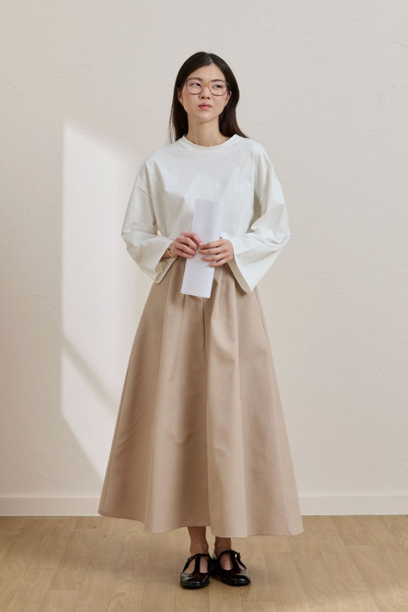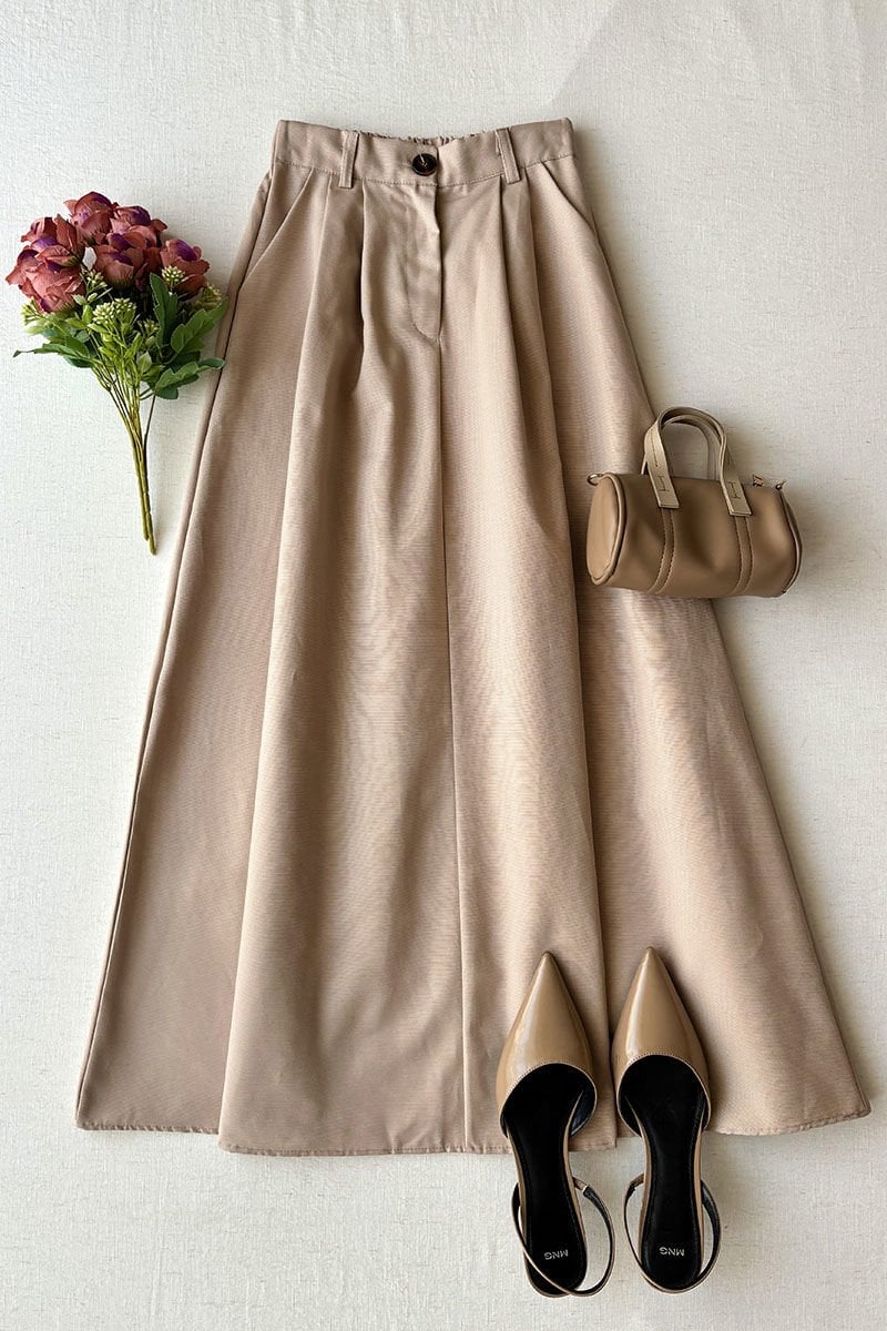 Krem Keten Tek Düğmeli Etek