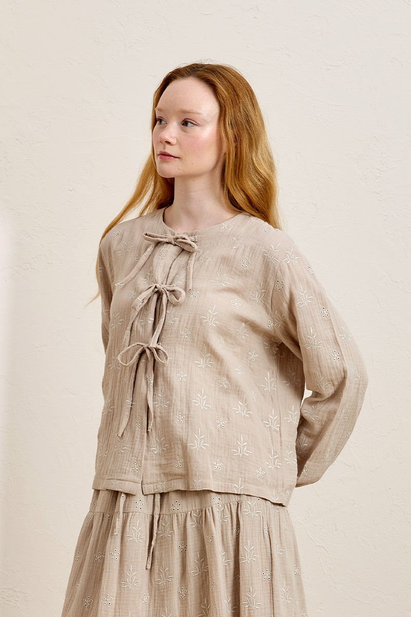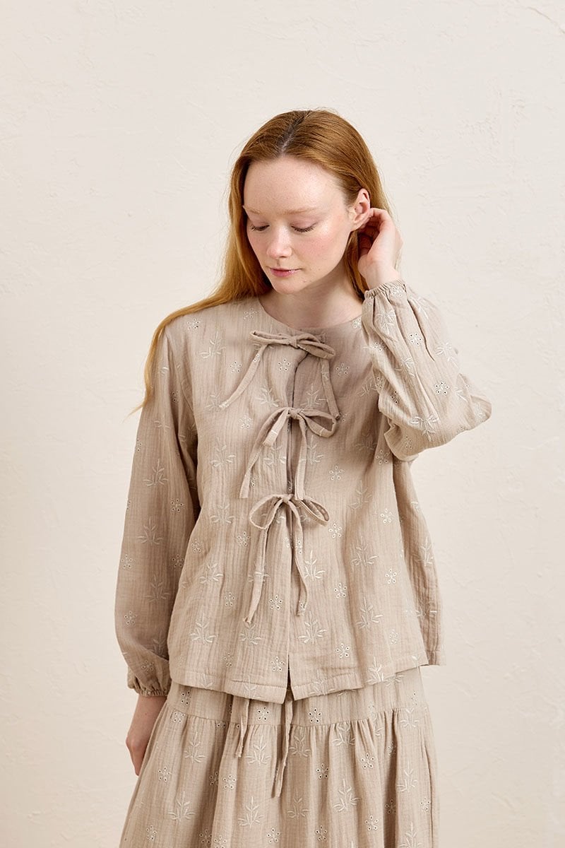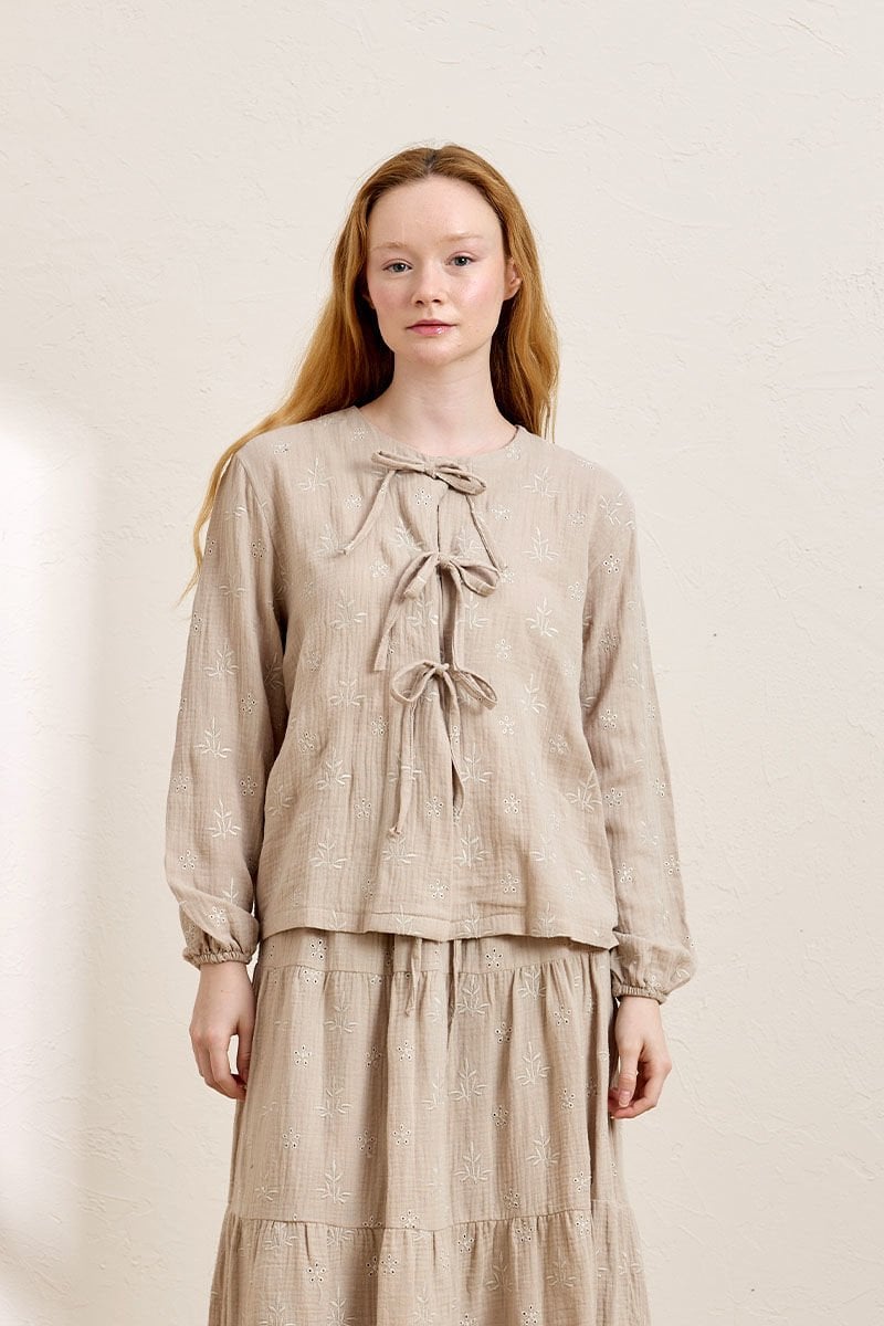 Vizon Fistolu Müslin 3 Fiyonklu Bluz