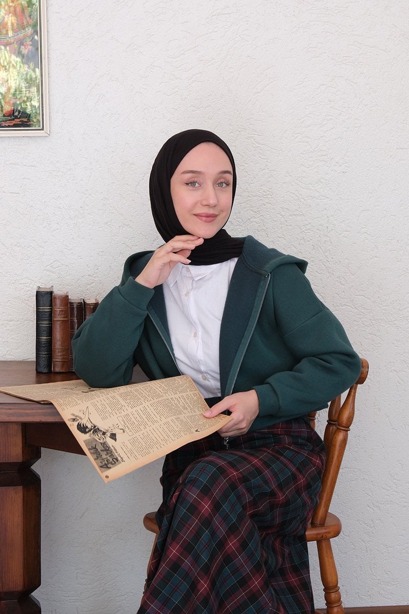 Zümrüt 3 İplik Kapüşonlu Crop Hırka