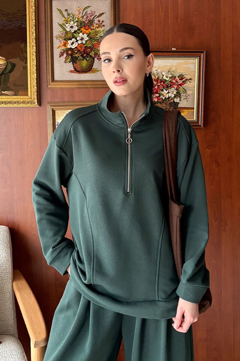 Zümrüt 3 İplik Yarım Fermuarlı Sweat